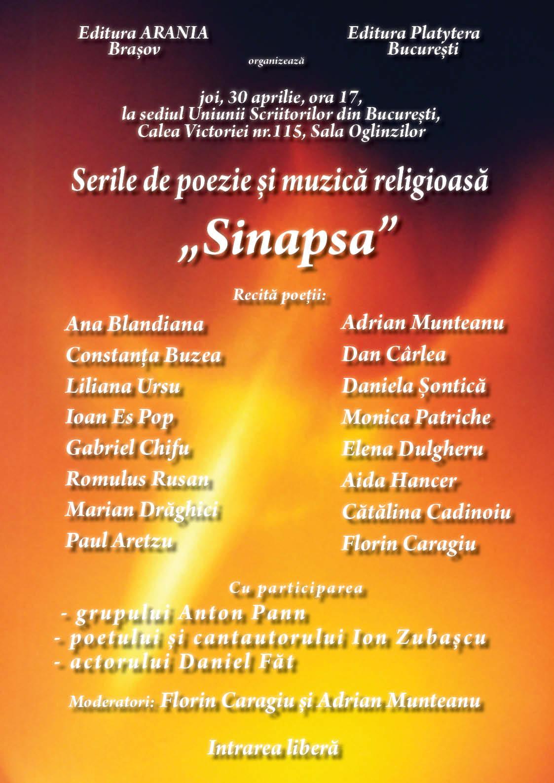 Maine, joi, 30 aprilie 2009 – Serile de poezie şi muzică religioasă “Sinapsa”