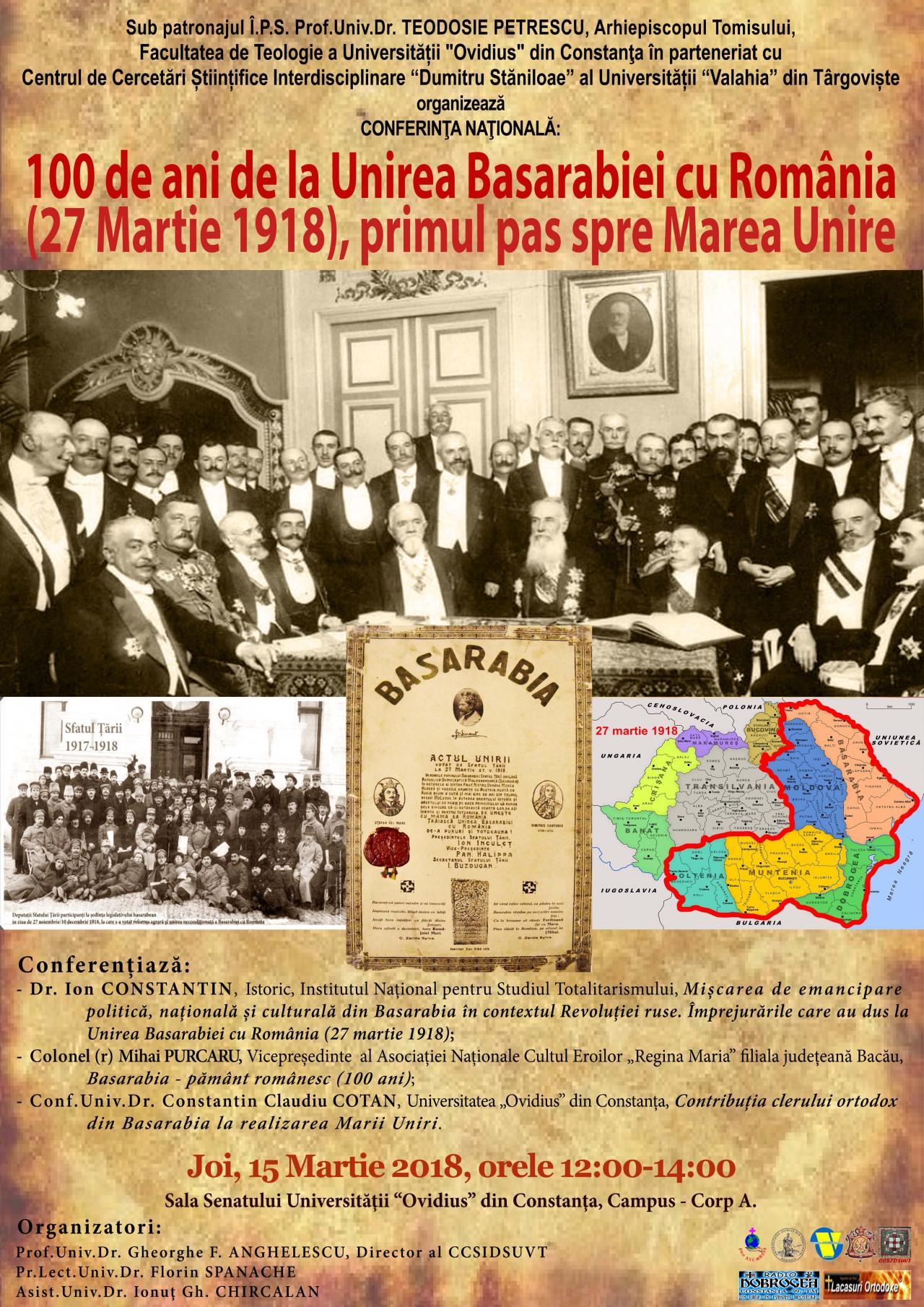 CONSTANTA: 100 de ani de la Unirea Basarabiei cu România (27 Martie 1918) – Joi, 15 martie