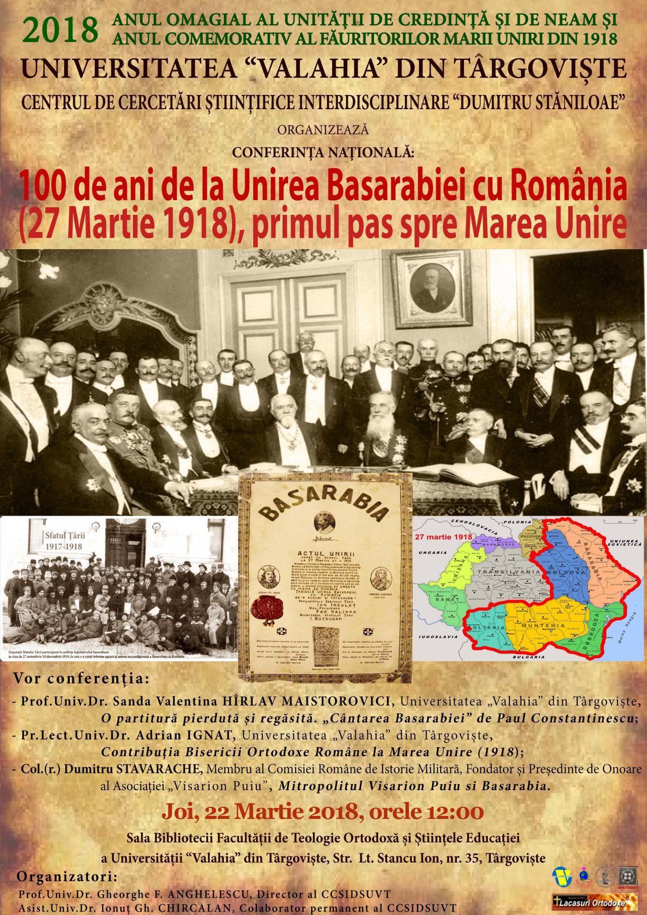 Targoviste, 22 martie 2018, despre: partitura pierdută Cântarea Basarabiei, Contribuția BOR la Unire, Mitropolitul Visarion Puiu și Basarabia