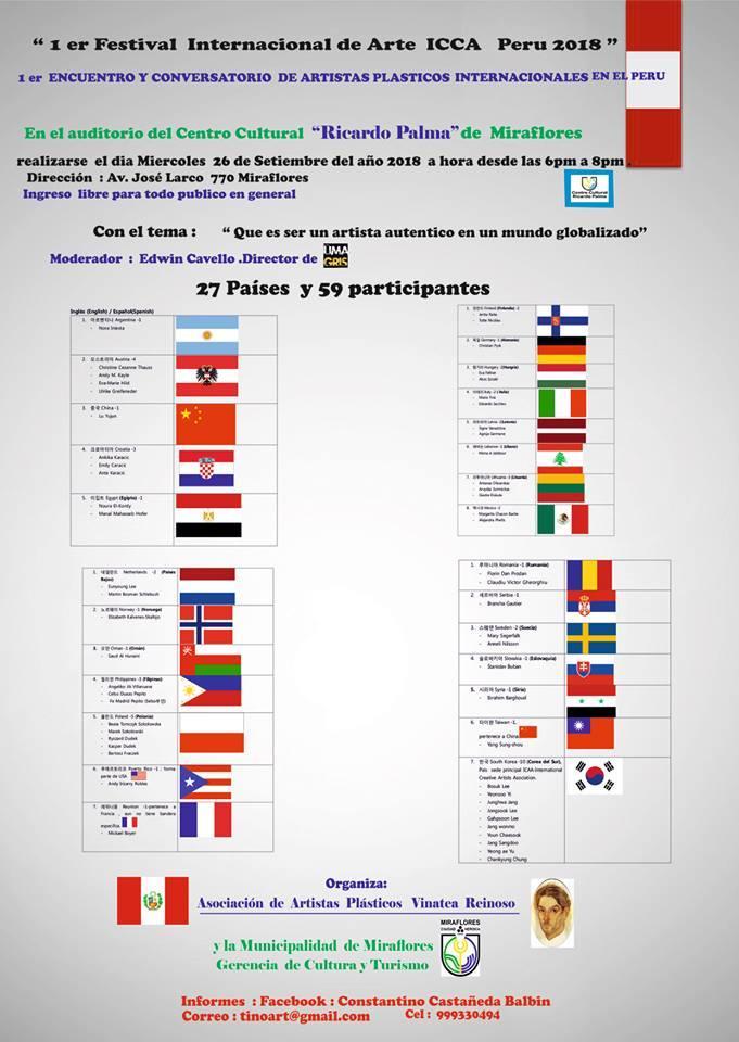 20-28 Septembrie 2018: Peru International Art Festival ICCA 2018 Evenimentul va cuprinde un simpozion de pictură și deschiderea expoziției internaționale de artă la Trujillo (20-23 septembrie 2018), iar în perioada [...]