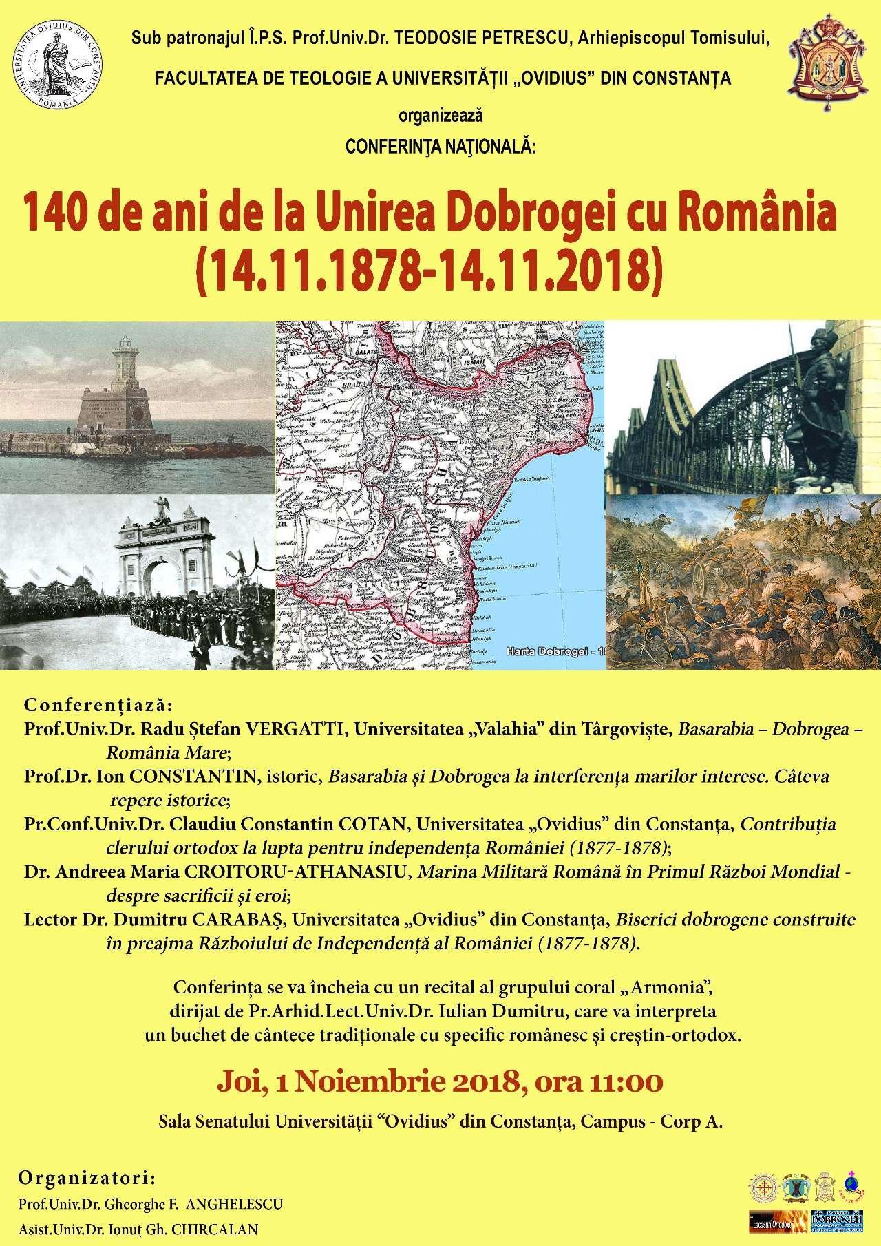 Conferinţa Naţională:  140 de ani de la Unirea Dobrogei cu România (14.11.1878-14.11.2018) – un nou eveniment în parteneriat media Lăcașuri Ortodoxe