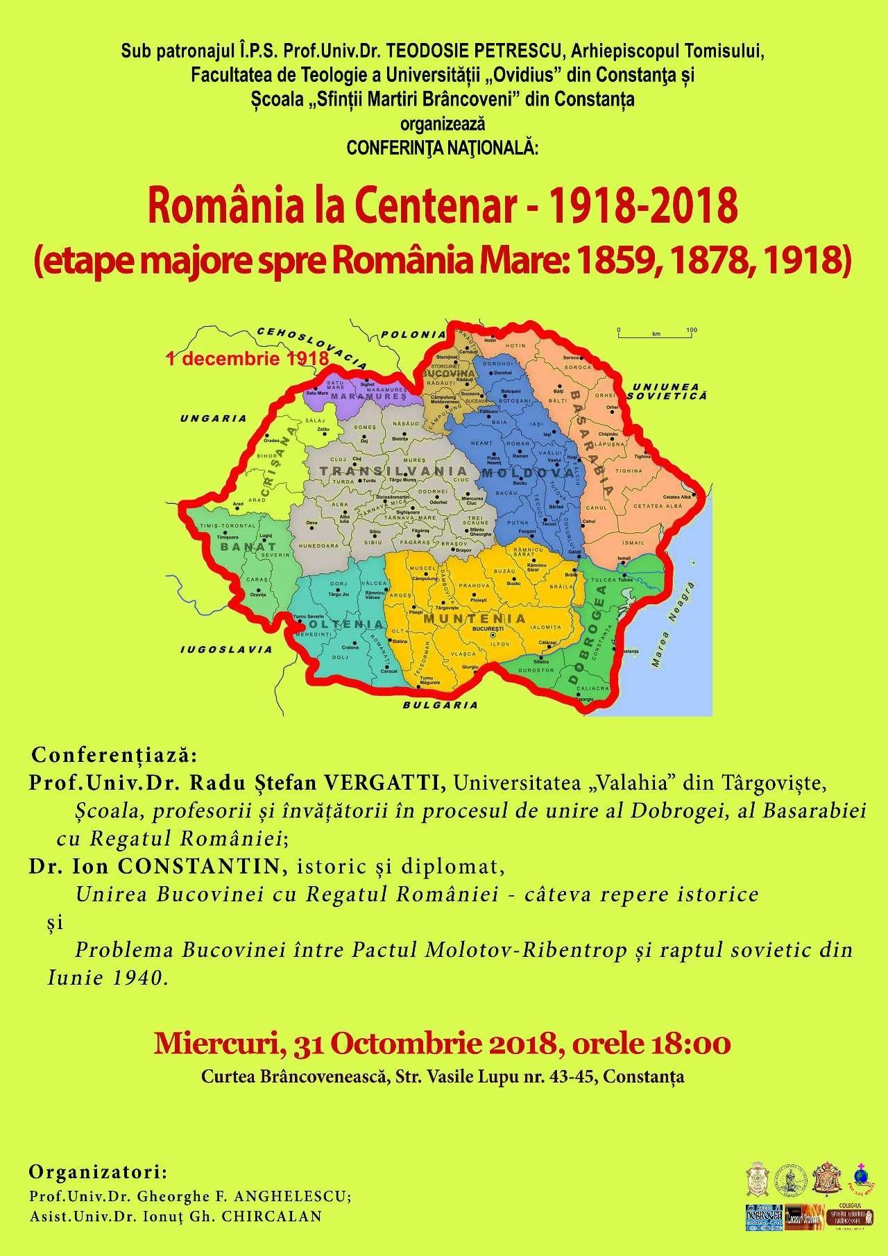 Conferința Națională: România la Centenar – 1918-2018 (etape majore spre România Mare: 1859, 1878, 1918) – un nou eveniment în parteneriat media Lăcașuri Ortodoxe