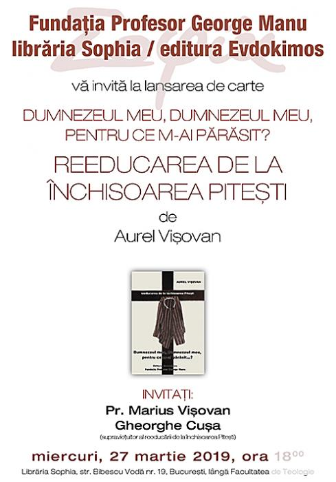 Fundația Profesor George Manu, Librăria Sophia și editura Evdokimos vă invită miercuri, 27 martie, ora 18, la lansarea volumului “Dumnezeul meu, Dumnezeul meu, pentru ce M-ai părăsit? Reeducarea de la [...]