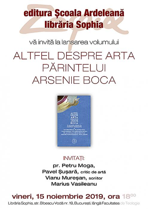 Librăria Sophia a lansat vineri, 15 noiembrie 2019, la ora 18.00, o nouă carte: „Altfel despre arta Părintelui Arsenie Boca”—- apărută la Editura Școala Ardeleană (Cluj), de Marius Vasileanu. Volumul [...]