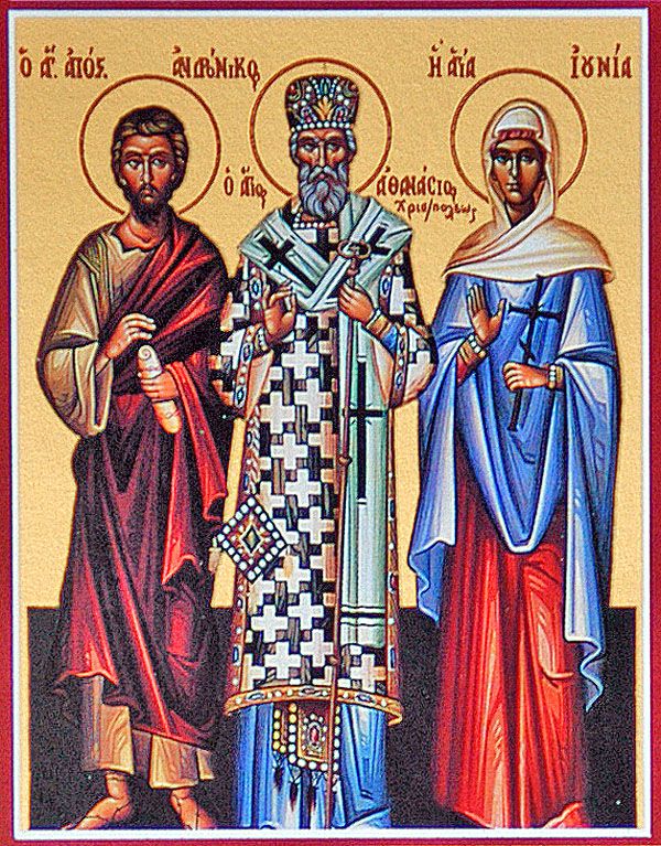 Sfântul Apostol Andronic (partea stângă) şi Sfânta Iunia, împreună-nevoitoarea (dreapta)– icoană, în care cei doi sfinţi apar alături de Sfântul Atanasie cel Nou, făcătorul de minuni şi Arhiepiscop de Hristianopolis [...]