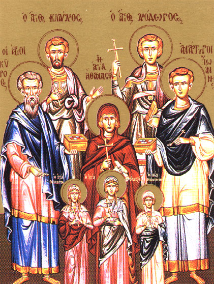 Luna lui ianuarie în 31 de zile: pomenirea Sfinţilor şi de minuni făcătorilor, doctori fără de arginţi, Chir şi Ioan, şi a Sfintei Muceniţe Atanasia şi a celor trei fiice fecioare ale ei, Teodota, Teoctista şi Eudoxia