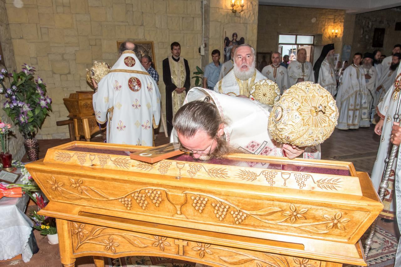 Randul inchinatorilor la sfintele moaste s-a derulat, incontinuu, prin fata scenei pe care a fost oficiata Sfanta Liturghie, iar perioada de “asteptare” – in fapt aceasta coincidea cu participarea la Sfanta Liturghie, raclele celor doi sfinti aflandu-se in imediata apropiere a preotilor slujitori – durand doar cateva zeci de minute.