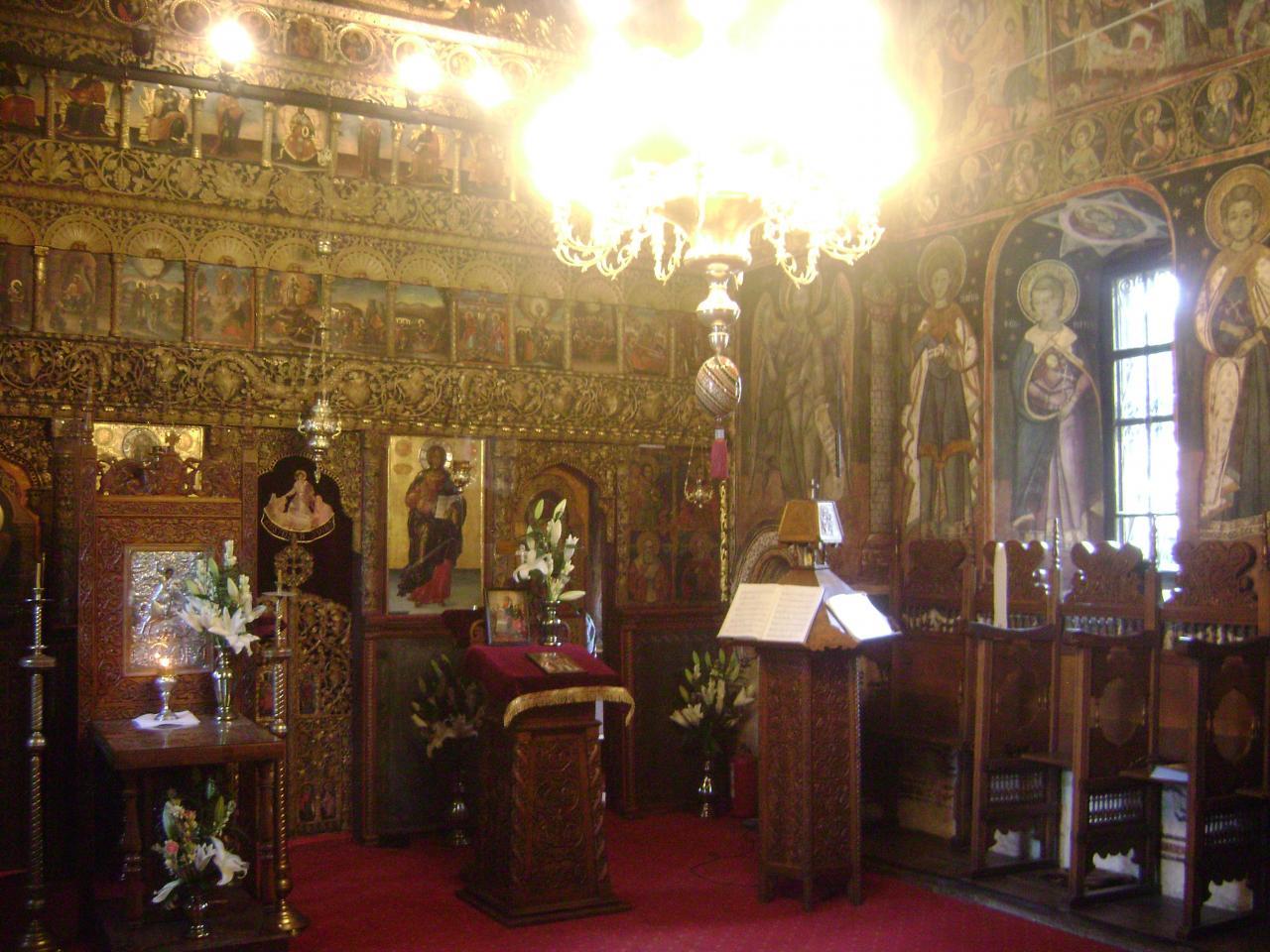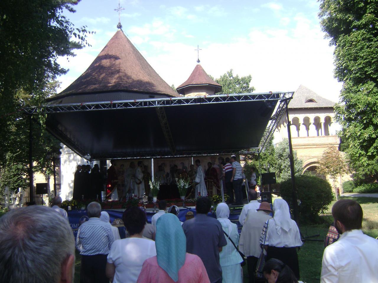 Protopsaltul Dimitrie Voicescu la Palatul Brancovenesc Mogosoaia 2017Sfânta Liturghie a fost oficiată pe o scenă special amenajată pentru această ocazie, de un sobor de preoţi şi diaconi, invitaţi speciali fiind Arhimandritul protopsalt Kabarnos Nikodimos din Grecia şi consilierul patriarhal Pr. Costin Ailioaei. Răspunsurile la strană au fost date de protopsaltul Dimitrie Voicescu şi grupul său vocal de psalţi.