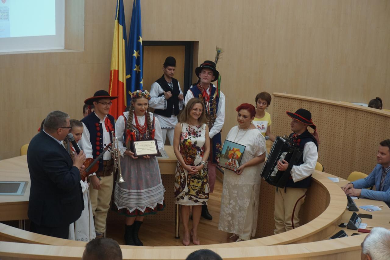 CANTECELE MUNTILOR: Primire oficială la Consiliul Județean SibiuAstăzi, 12 august 2017, ansamblurile participante la cea de-a 42-a ediție a Festivalului Internațional de Folclor „Cântecele Munților” au fost primite oficial, la sediul Consiliului Județean Sibiu, de către doamna Daniela Câmpean, președinta CJ Sibiu, domnul Marcel Luca, vicepreședinte CJ Sibiu, domnul Sebastian Dotcoș, administrator public, doamna Silvia Macrea, director festival și manager CJCPCT „Cindrelul-Junii” Sibiu. Oaspeții festivalului au fost întâmpinați cu pâine și sare de către gazdele „Junii Sibiului”, în acorduri de muzică tradițională românească. Fiecare ansamblu a primit o Diplomă de excelență din partea instituțiilor organizatoare și a mulțumit prin scurte momente muzical-coregrafice.