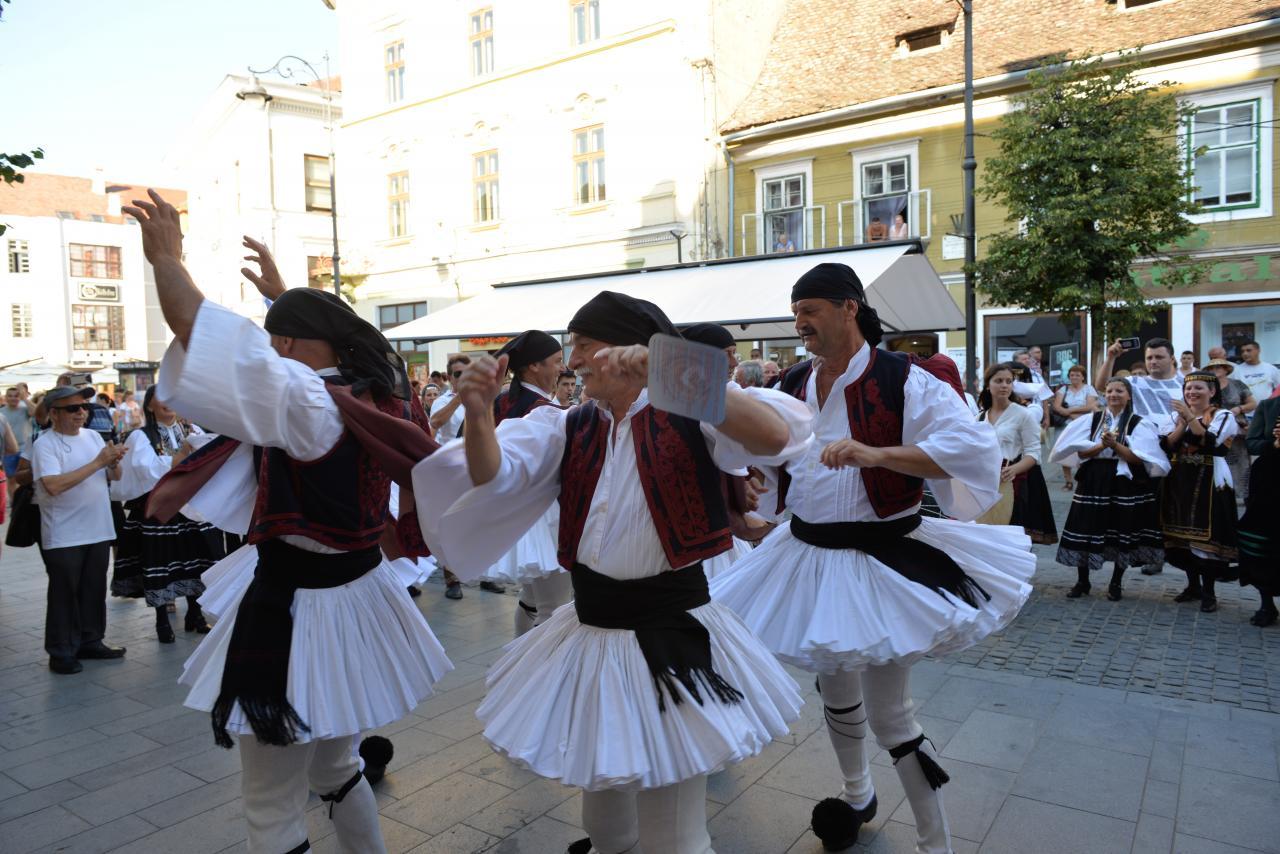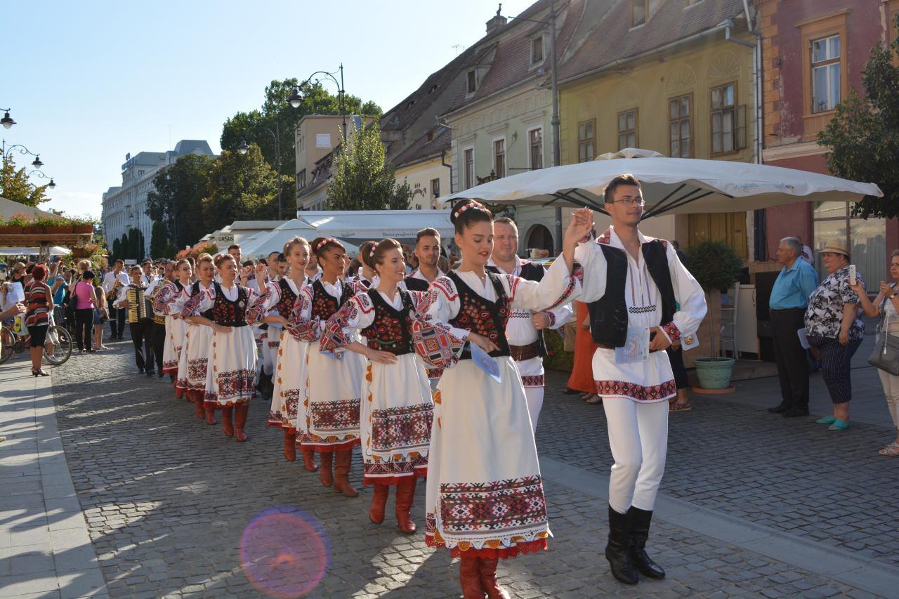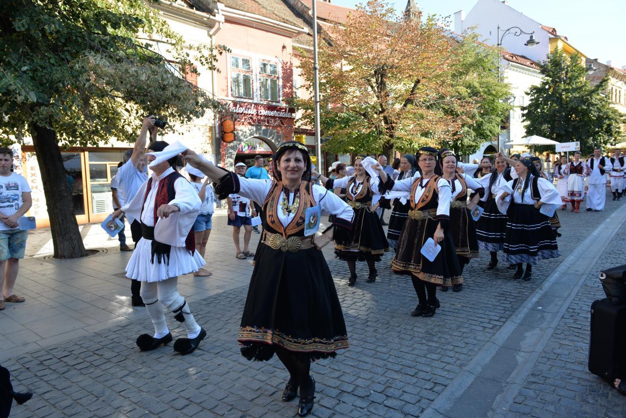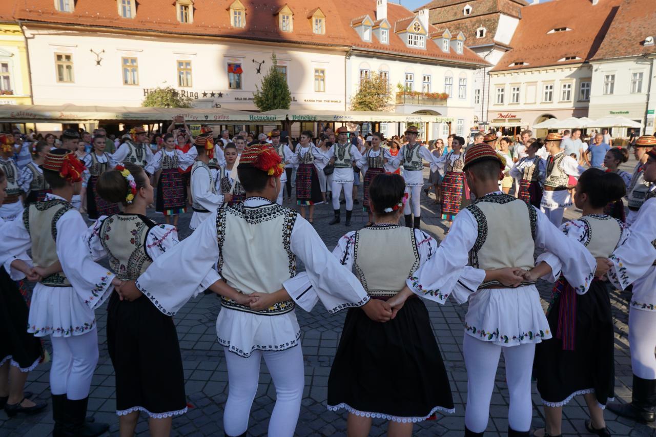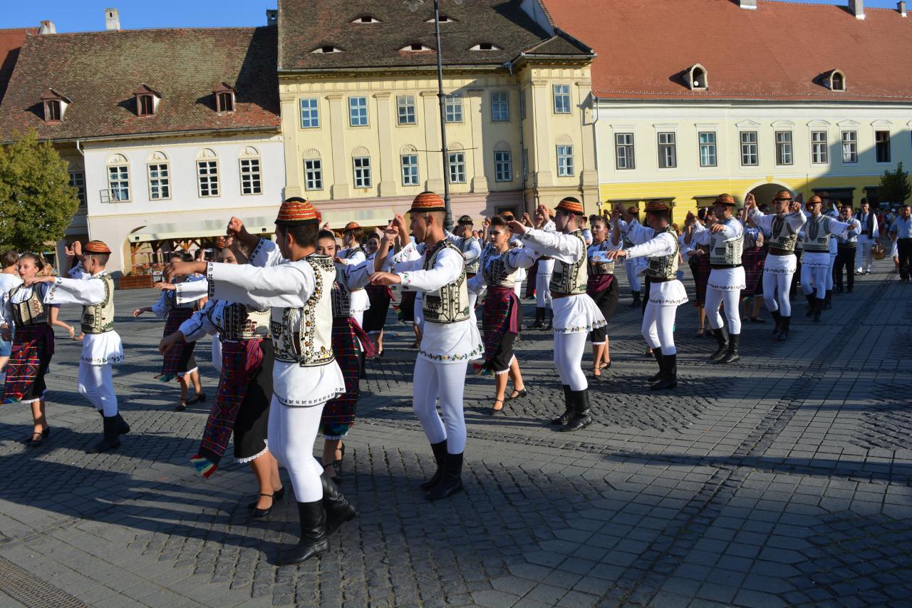 Astăzi, spectacolele în Piața Mare continuă de la ora 19, cu recitalurile susținute de ansamblurile „Cununiţa”- Arad, „Estia Pieridon Mouson Katerinhs” – Grecia, „Hora”- Mureş, „Laza Nancici” – Serbia, „Kolkhi” – Georgia și „Mărginimea” – Sibiu. Ana Ilca Mureșan ne oferă apoi un mănunchi de cântece tradiționale, iar Ansamblul Folcloric „Timişul” și soliștii: Andreea Voica, Petrică Irimică Miulescu, Carmen Popovici Dumbravă, Stana Stepanescu ne invită la o seară bănățeană.Sărbătoare în Piața Mare