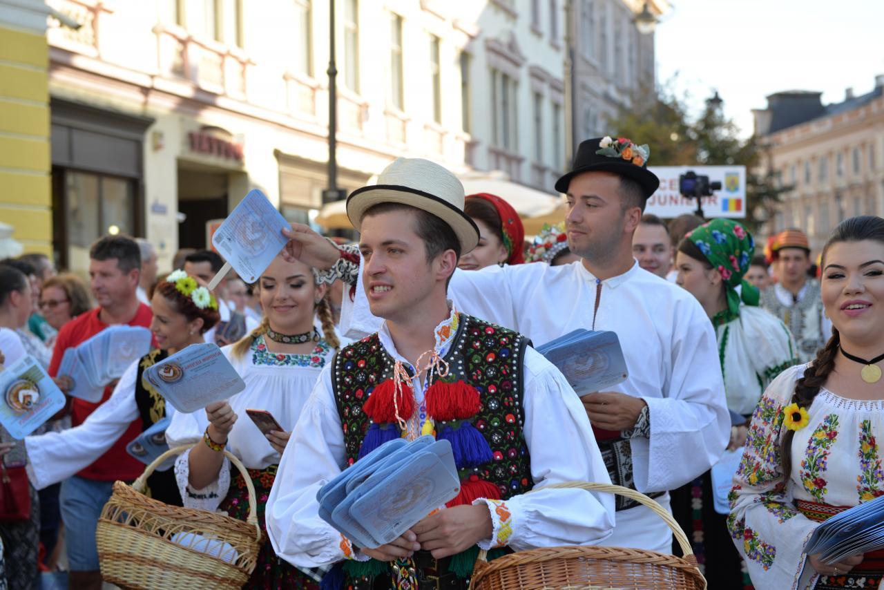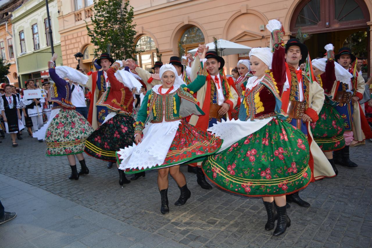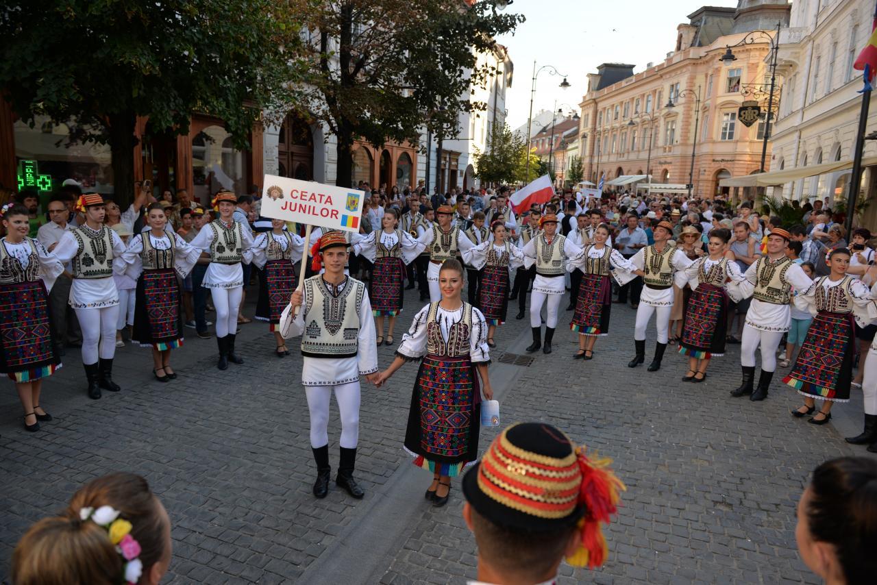 Peste 600 de artiști au invadat ieri centrul Sibiului la parada portului popular și spectacolul extraordinar „Junii Sibiului și invitații lor”, programate în cadrul Festivalului Internațional de Folclor „Cântecele Munților”. Dialogul în pași de dans între Junii de ieri și Junii de azi și cel prin cântec între diferite generații de interpreți de muzică populară, bogăția costumelor tradiționale și antrenul în care publicul a fost cuprins la parada portului popular – acestea au fost elementele cheie ale serii de vineri. Astăzi, festivalul aduce în prim plan muzică și dansuri din Grecia, Serbia, Georgia și România, iar mâine, 13 august, Sibiul spune rămas-bun celei de-a 42-a ediții a „Cântecelor Munților” printr-un spectacol extraordinar, ce ne poartă prin România, Polonia și Columbia.