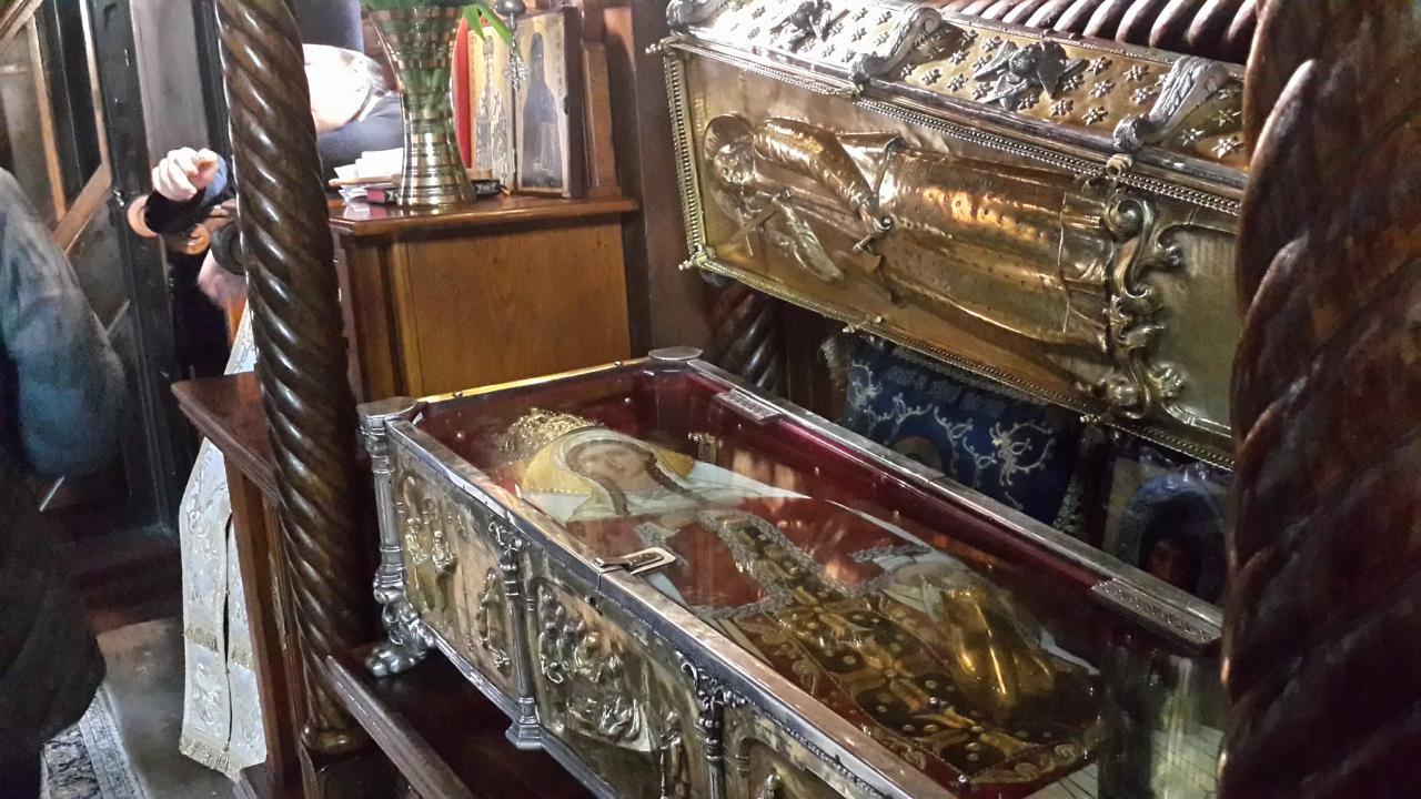 Ajungand sa pomeneasca tari si localitati, biserici si manastiri din apropiere, chiar si din Romania – intr-o disperare evidenta in fata situatiei incredibile care se nascuse – tatăl si cei ce erau de fata aveau sa vada cum trupul devine usor, dintr-o data, la amintirea Bisericii Domnesti din Curtea de Arges.