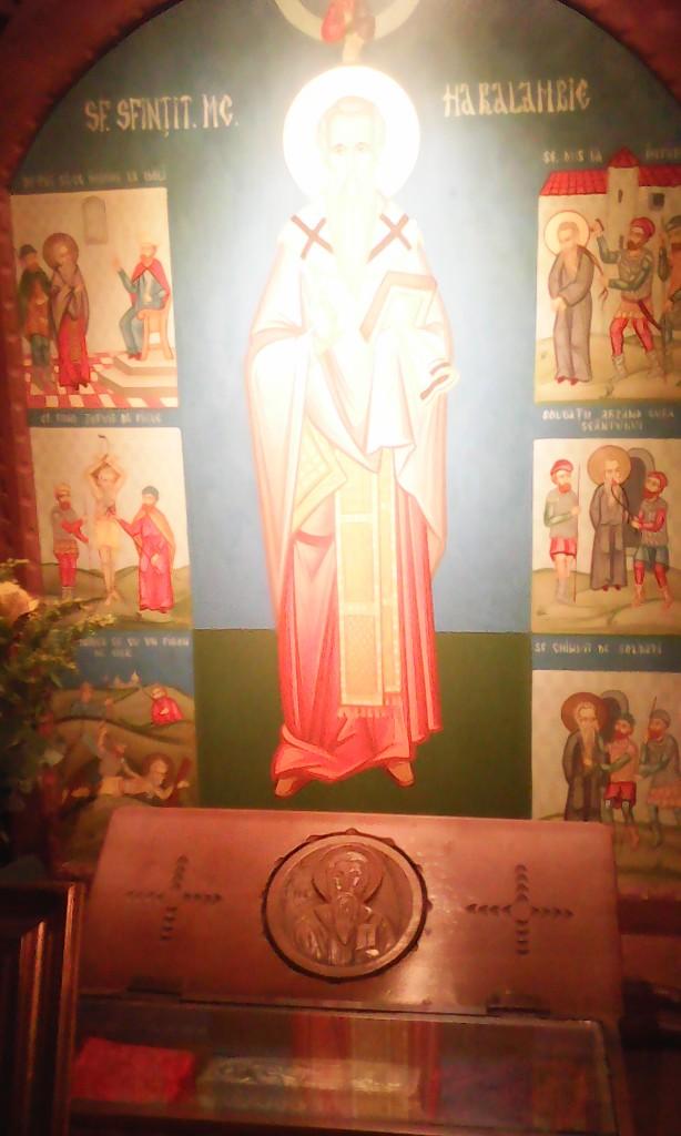 MOASTELE SFANTULUI HARALAMBIE in BucurestiO parte importanta din moastele Sfantului Mucenic Haralambie, care altadata au fost ingropate cu cinste de Galinia, fiica Imparatului Septimiu Sever (193-211) – tocmai din anul… 202 dupa Hristos! – au ajuns, astazi, si intr-o binecunoscuta Biserica din Bucuresti: Biserica Sfantul Gheorghe (sector 1, Calea Grivitei – vizavi de intrarea in Uzinele Grivita Rosie) dupa cum ne precizeaza Pr. paroh Lepadatu Lica, iar credinciosii se vor putea inchina pe parcursul intregii zile. Racla cu sfintele moaste (foto) care se afla astazi spre inchinare – asezata in partea dreapta a intrarii in naos – este pastrata permanent in aceasta veche biserica. Inaintea sfintei racle, aseara, a fost oficiata o Slujba a Vecerniei Mari cu Litie, iar astazi se savarseste Sfanta Liturghie, intr-un sobor insemnat de preoti.