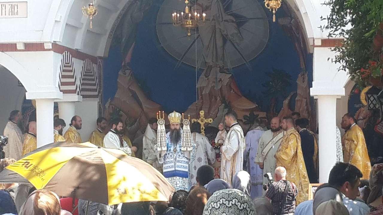 Slujba Sfintei Liturghii este săvârșită de IPS Părinte Teodosie, Arhiepiscopul Tomisului, alături de PS Părinte Galaction, Episcopul Alexandriei și Teleormanului, PS Părinte Nicodim, Episcopul Severinului și Strehaiei si PS Părinte Veniamim, Episcopul Basarabiei de Sud.