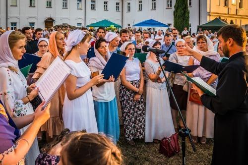 Slujba Vecerniei a fost oficiată de Mitropolitul Sava al Varșoviei și de alți opt ierarhi ai Bisericii Poloneze. Un Acatistul Maicii Domnului și o Slujbă de Pomenire pentru Arhiepiscopul Miron, fost stareț al mănăstirii, au fost oficiate după aceasta.