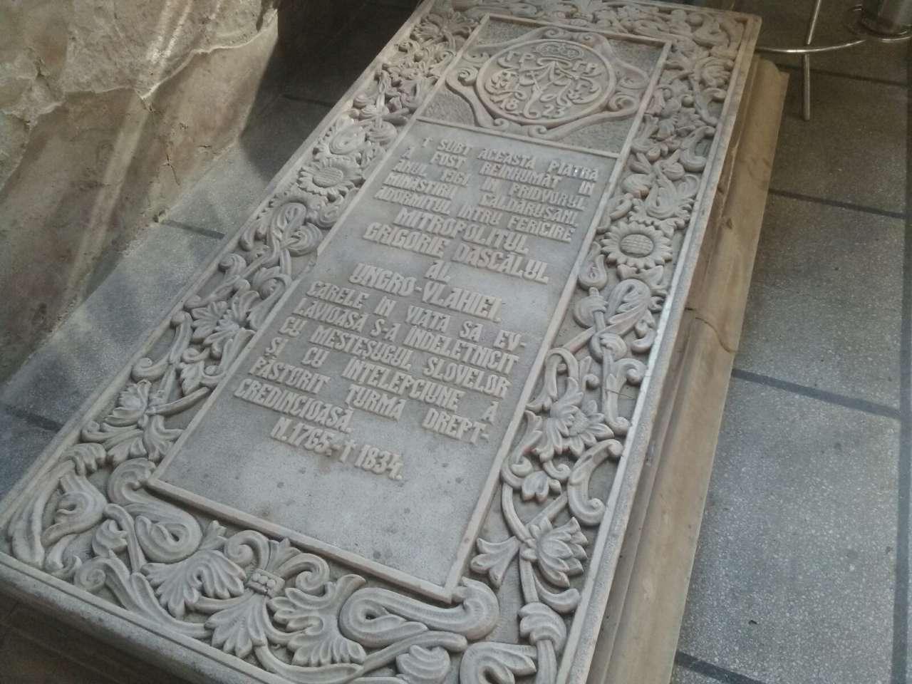 Mormântul Mitropolitului Ghenadie Petrescu se află în partea stângă (în sensul de intrare în sfântul lăcaș) a pridvorului deschis al bisericii principale a sfintei mânăstiri, de cealaltă parte aflându-se locul în care a fost odată (1961) reînhumat un alt Mitropolit, canonizat ulterior de Sfântul Sinod al Bisericii Ortodoxe Române, iubit și apreciat de credincioșii ortodocși: Sfântul Ierarh Grigorie Dascălul, Mitropolit al Ungro-Vlahiei, ale cărui sfinte moaște se află acum așezate spre închinăciune în racla din aceeași biserică.