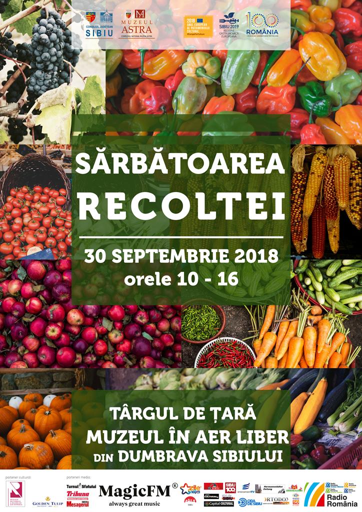 Muzeul ASTRA, instituție ale cărei acțiuni sunt posibile prin finanțarea Consiliului Județean Sibiu, organizează duminică, 30 septembrie 2018, Sărbătoarea Recoltei, un eveniment care face parte din cadrul programului Târgul de țară. Inițiativa va fi derulată sub egida Anului European al Patrimoniului Cultural și a Programului Sibiu Regiune Gastronomică Europeană 2019. 3 bucăterese (,,socăcițe”, denumite în termeni populari), vor face demonstrații interactive de gătit preparate de toamnă după rețete și tehnici tradiționale.