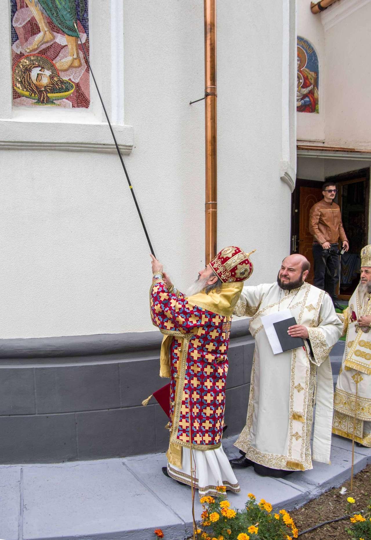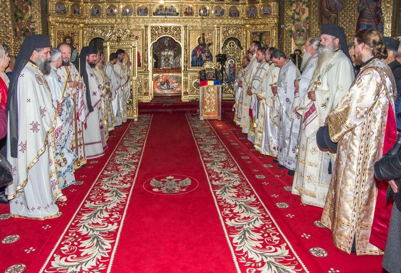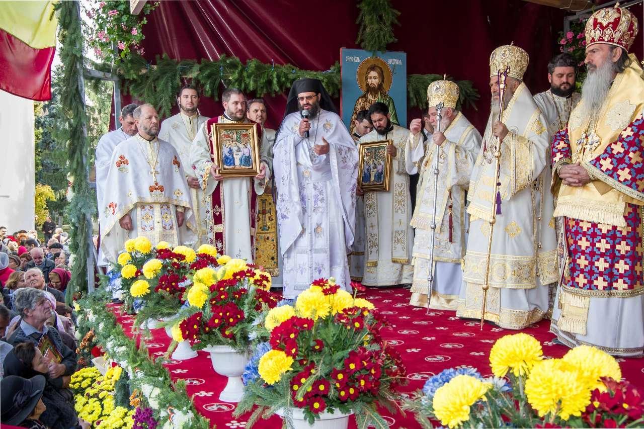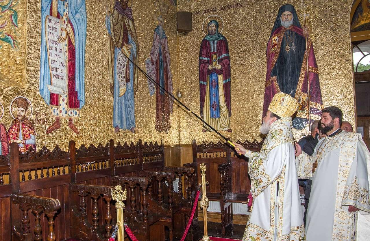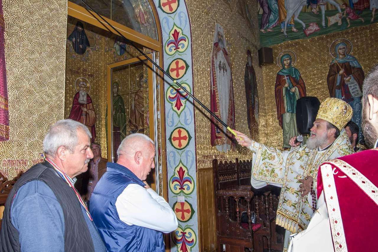Preasfințitul Părinte Visarion, Episcopul Tulcii, a slujit împreună cu ÎPS Teodosie Arhiepiscopul Tomisului, ÎPS Casian Arhiepiscopul Dunării de Jos și PS Vincențiu Episcopul Sloboziei și Călărașilor. De asemenea, la slujbă a participat și Preacuviosul Părinte Iov, starețul Sfintei Mânăstiri Halmyris – Murighiol, Tulcea, unde se află cele mai vechi sfinte moaște descoperite la noi în țară: Sfintele Moaște ale Sfinților Mucenici Epictet și Astion. Pictura care a fost sfințită a fost realizată în mozaic auriu de 24 K.