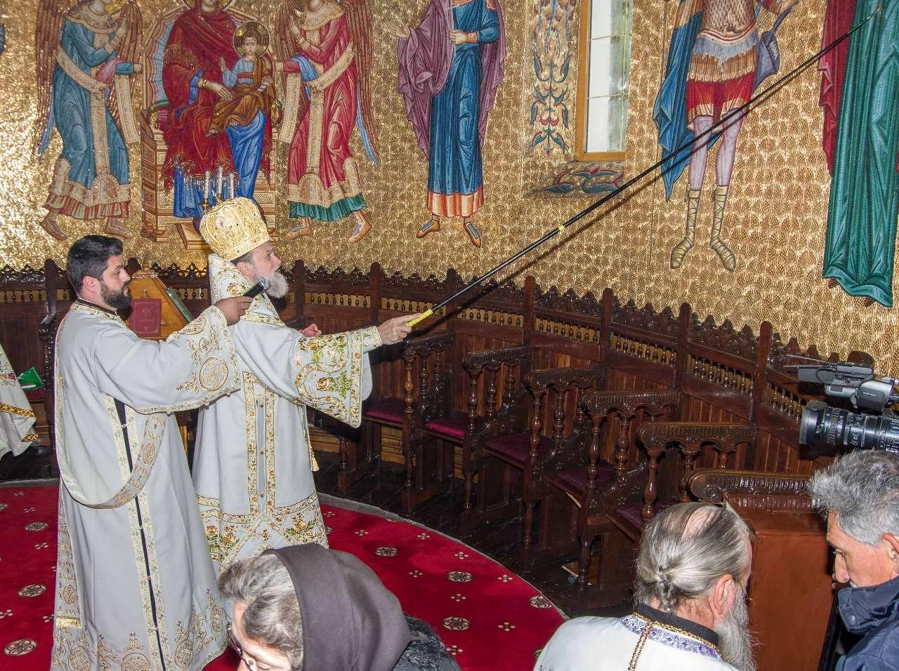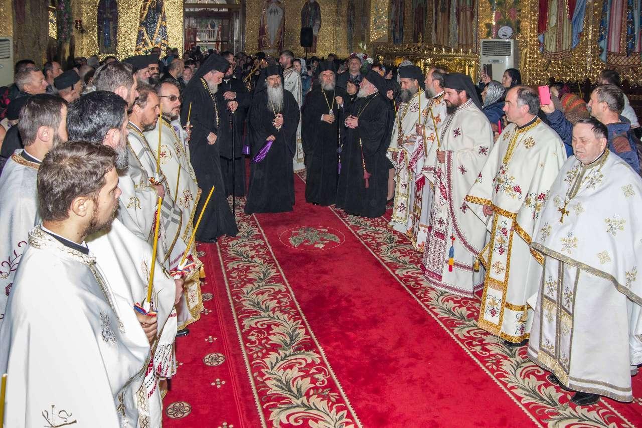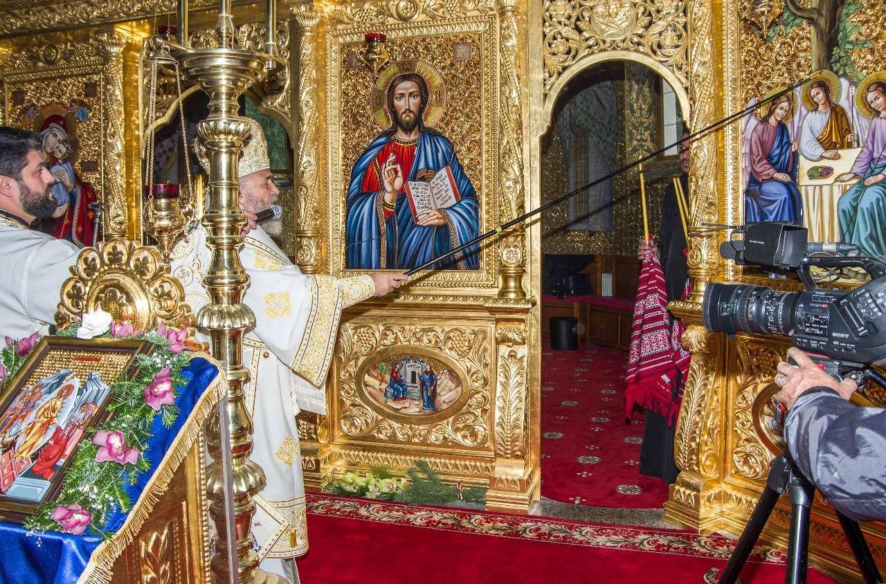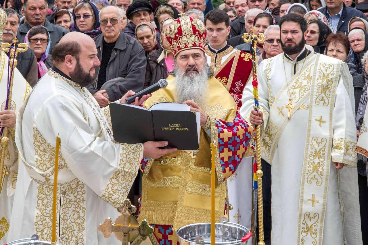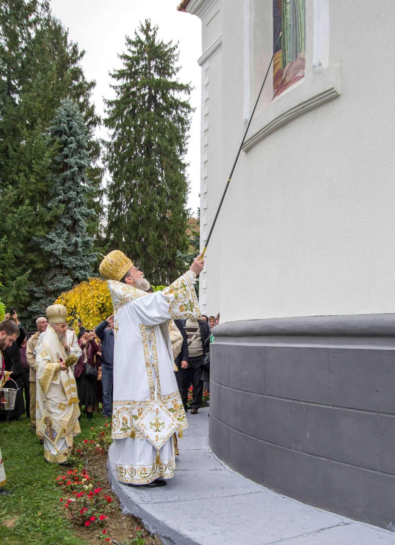 Preasfințitul Părinte Visarion, Episcopul Tulcii, a slujit împreună cu ÎPS Teodosie Arhiepiscopul Tomisului, ÎPS Casian Arhiepiscopul Dunării de Jos și PS Vincențiu Episcopul Sloboziei și Călărașilor. De asemenea, la slujbă a participat și Preacuviosul Părinte Iov, starețul Sfintei Mânăstiri Halmyris – Murighiol, Tulcea, unde se află cele mai vechi sfinte moaște descoperite la noi în țară: Sfintele Moaște ale Sfinților Mucenici Epictet și Astion. Pictura care a fost sfințită a fost realizată în mozaic auriu de 24 K.