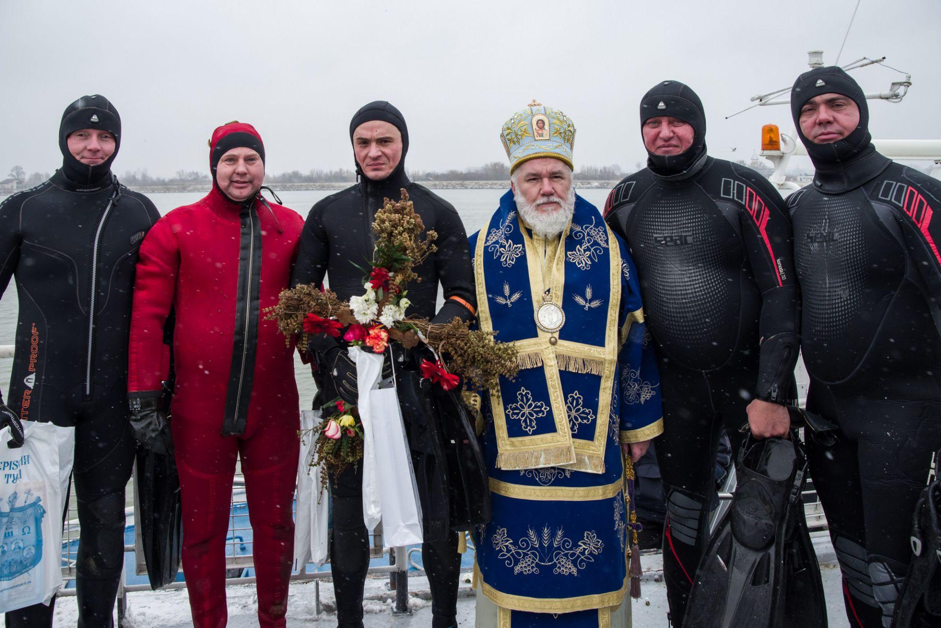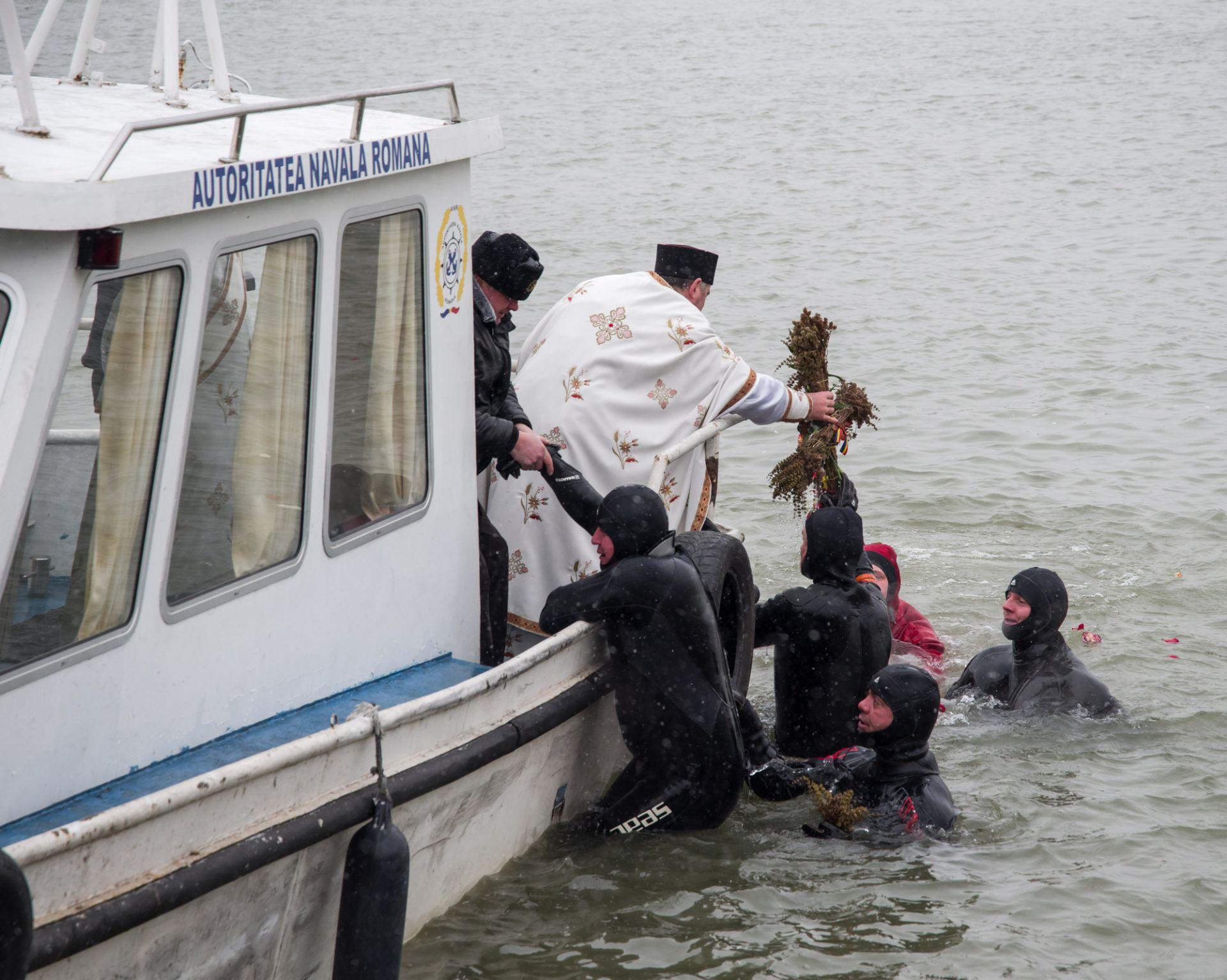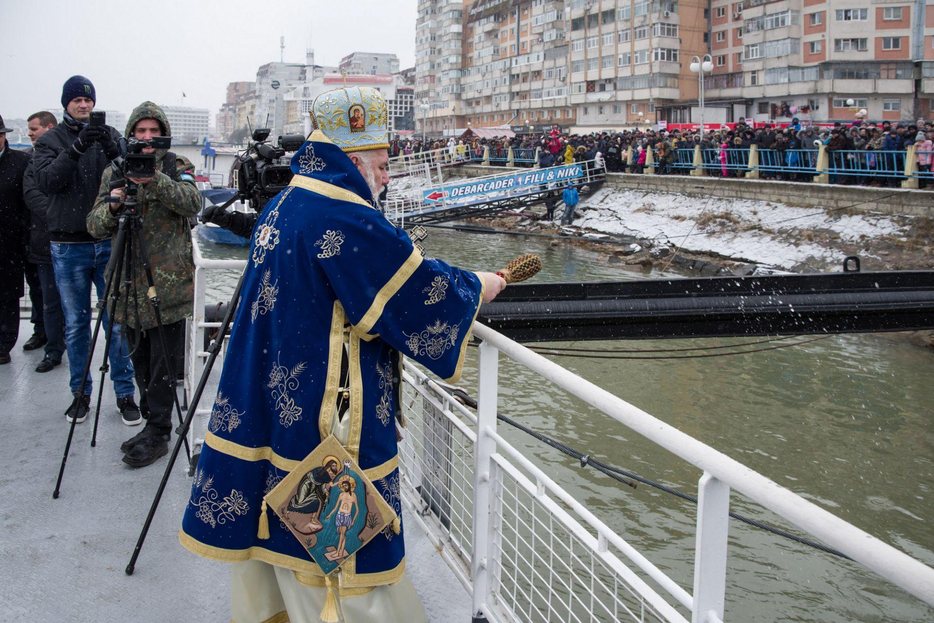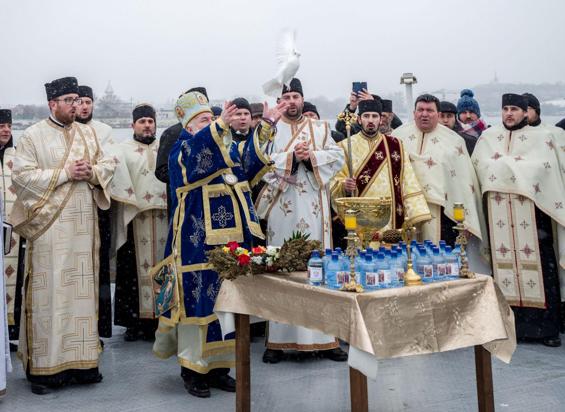 P.S. Visarion a eliberat un porumbel alb, act ce simbolizează pogorârea Duhului Sfânt. Cinci tineri angajați M.A.I. s-au aruncat în apele reci ale fluviului, pentru a prinde crucea aruncată de Episcopul Tulcii.