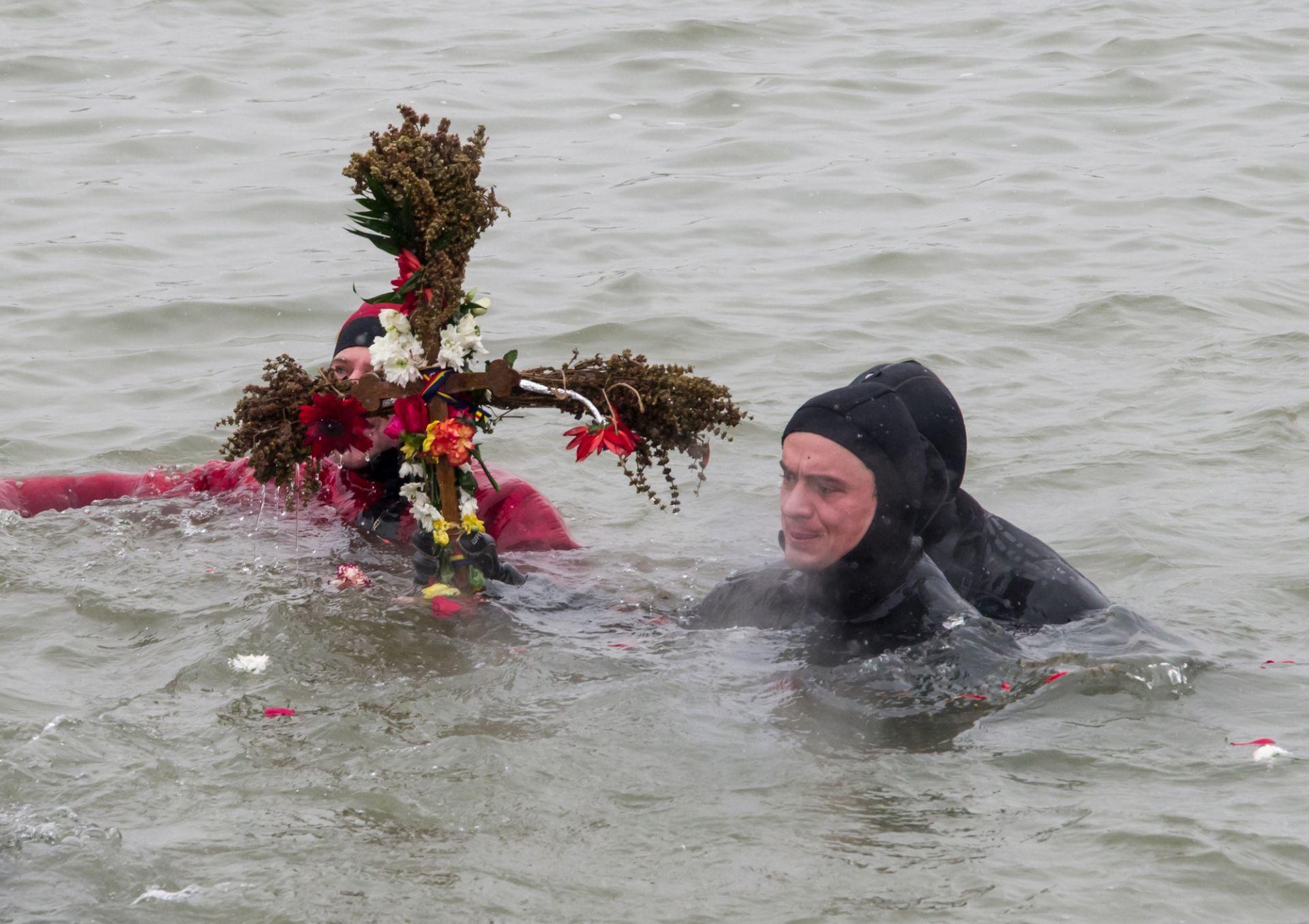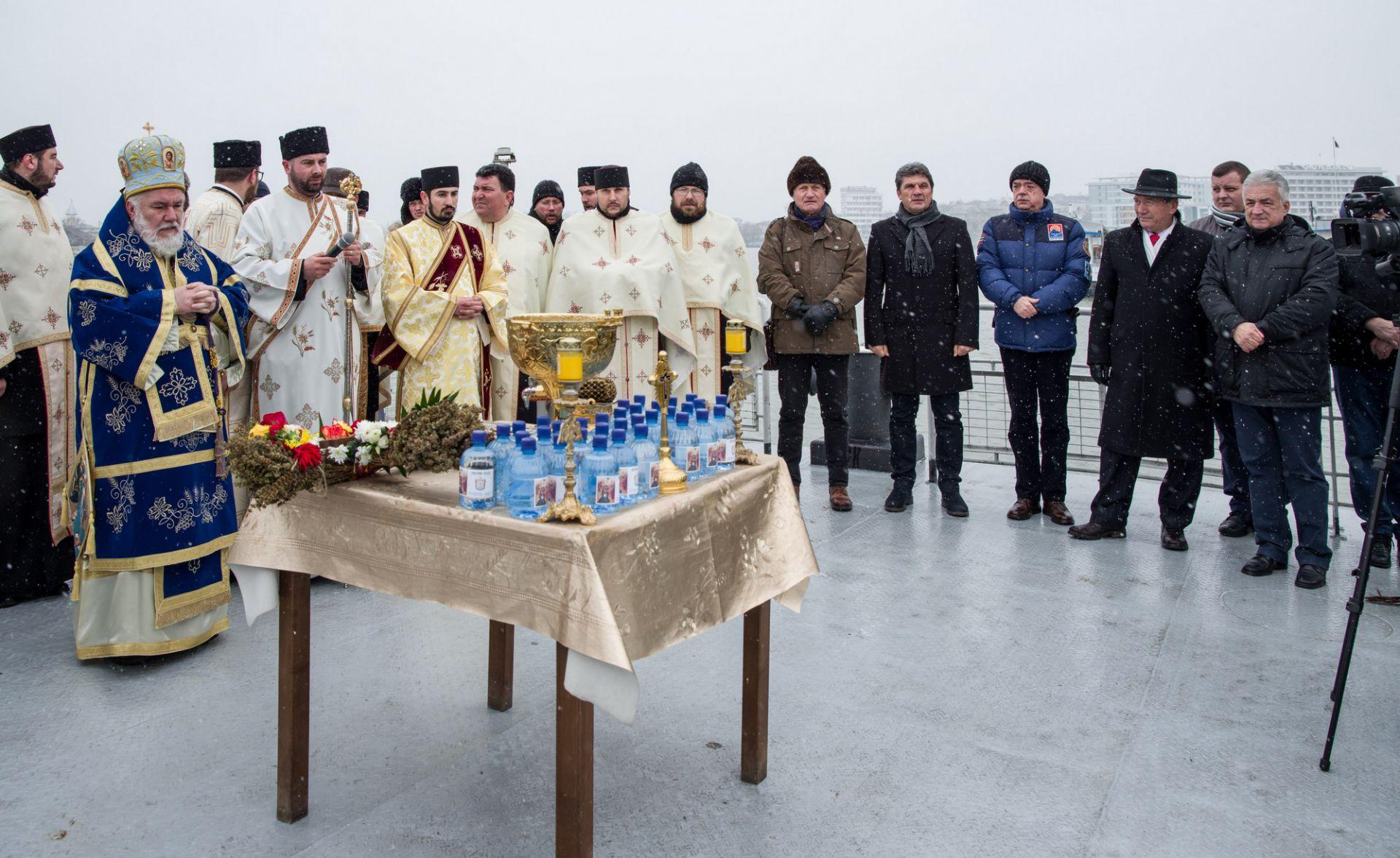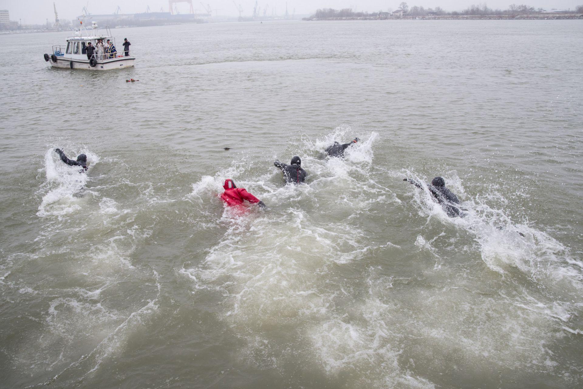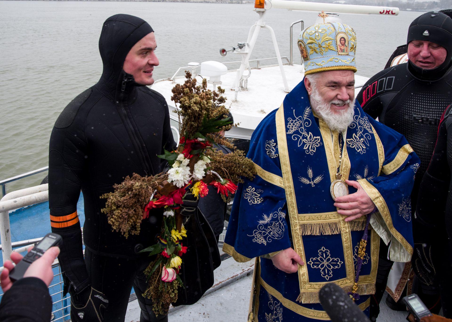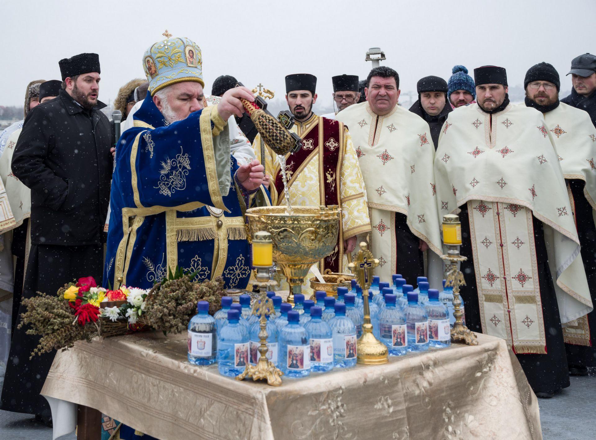 P.S. Visarion a eliberat un porumbel alb, act ce simbolizează pogorârea Duhului Sfânt. Cinci tineri angajați M.A.I. s-au aruncat în apele reci ale fluviului, pentru a prinde crucea aruncată de Episcopul Tulcii.