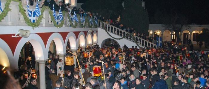 Această imagine de noapte s-a imprimat profund în memoria celor din Tinos și, de atunci, odată cu cinstirea Aflării Icoanei și a evenimentelor minunate legate de biserică, au hotărât ca ea să fie sărbătorită cu o procesiune cu felinare, la care să participe absolut toți localnicii Tinosului.