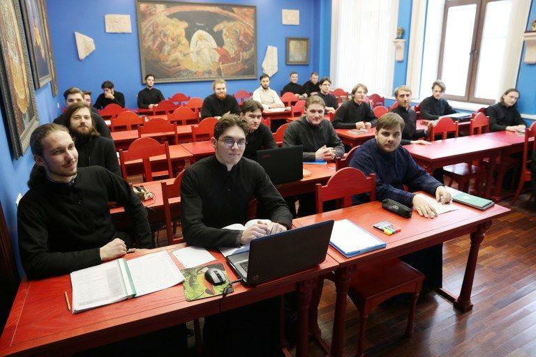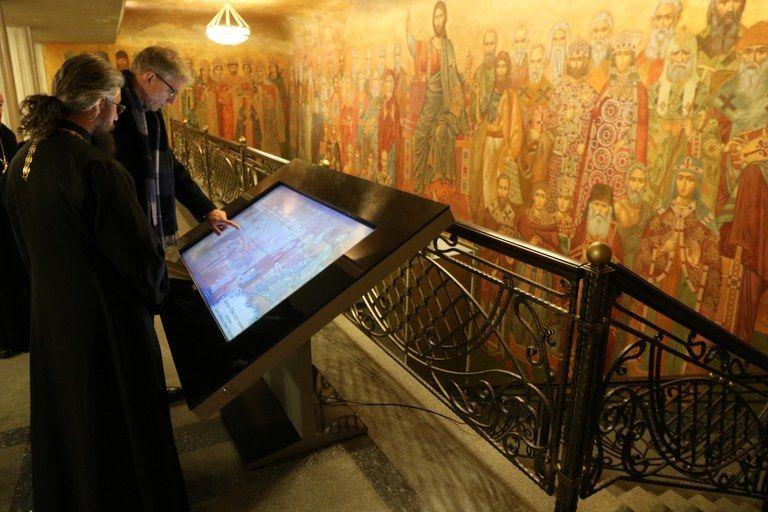 În sala de intrare a seminarului, tradițiile se întâlnesc cu tehnologia high-tech; fresca panoramică a lui “Hristos și a Ucenicilor Săi” este însoțită de un ecran tactil care permite vizitatorilor să facă clic pe o imagine specifică pentru a afla mai multe informații. Printre ucenici, sfinți și mucenici, se pot distinge mai multe autorități ortodoxe ruse, precum și scriitori celebri asemenea lui Dostoievski sau Gogol.