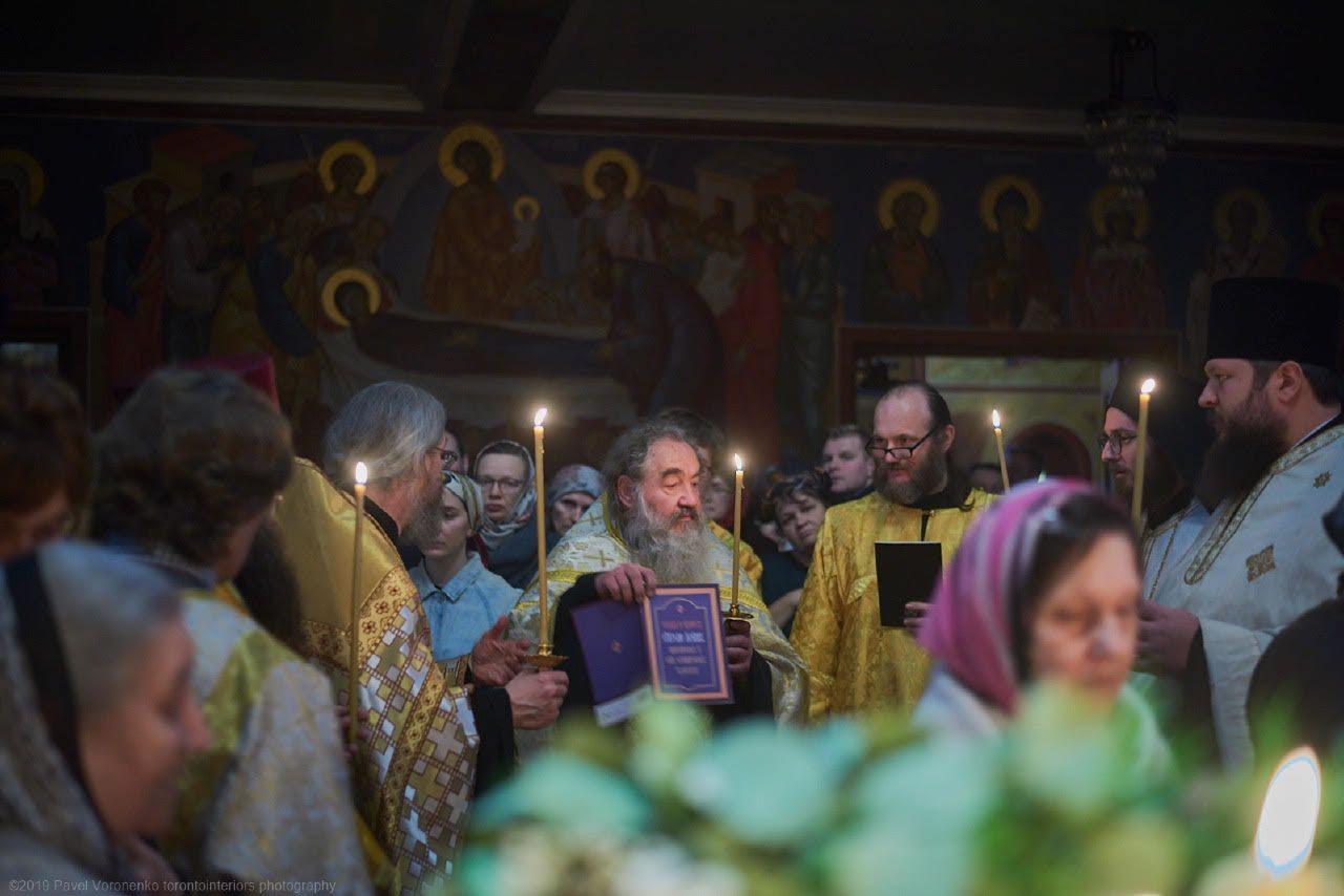 După ce a ascultat această povestire, Protopopul Peter Perekrestov, care conduce obștea Catedralei Maicii Domnului din San Francisco “Bucuria tuturor celor necăjiți”, unde se află rămăsițele Sfântului Ioan, a purtat o discuție cu credincioșii. Numărul mare de români din Toronto (unde se află 11 parohii românești) a făcut ca slujbele să se încheie la ora 23:00.