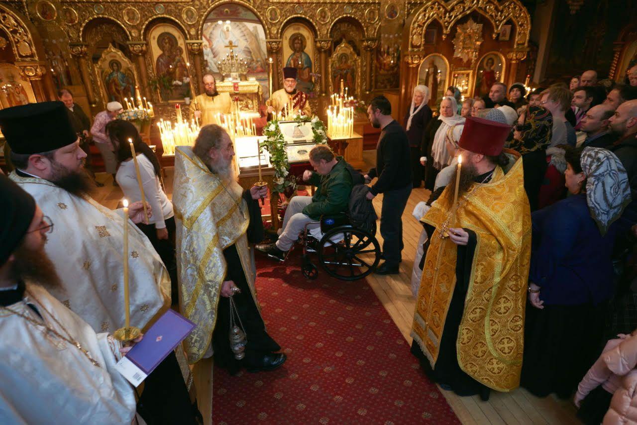 Duminică, 3 martie, ușile catedralei au fost deschise la ora 7.30 și sfintele moaște au fost scoase din altar, în naosul bisericii. Spațiul mare a fost umplut de credincioși, pentru Sfânta Liturghie. Corul catedralei, sub îndrumarea lui George Skok, a cântat Imnul Heruvic, compus de renumitul compozitor Mihail Constantinov, dirijor al corului Catedralei din San Francisco, iar Părintele Petru a ținut predica, în care a atras atenția asupra cauzelor duhovnicești ale căderii unei mari părți a societății occidentale.