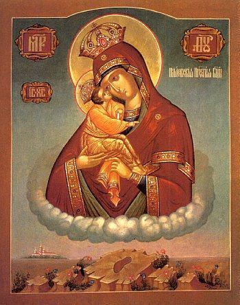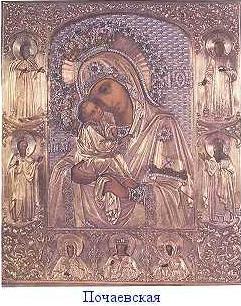 O icoană pictată în stil bizantin târziu a „călătorit”, după cum a vrut Dumnezeu, din Grecia până în Ucraina, ajungând a fi cinstită în mânăstirea (devenită lavră) de la Pochaev. Lavra Pochaev, cu hramul Adormirii Maicii Domnului, se află în provincia Ternopil din sud-vestul Ucrainei, iar locul este învăluit în legendă. Despre icoana făcătoare de minuni a Maicii Domnului nu sunt cunoscute toate datele istorice. Acest lucru se întâmplă la aproape toate icoanele făcătoare de minuni din vechime, care de cele mai multe ori au stat o vreme ascunse în timpul perioadei iconoclaste, în peşteri, în copaci, în ape… în locuri numai de Dumnezeu ştiute, dar care se arată ulterior, spre a ajuta pe oameni în sporirea evlaviei faţă de cele sfinte şi, concret, în necazurile vieţii acesteia.