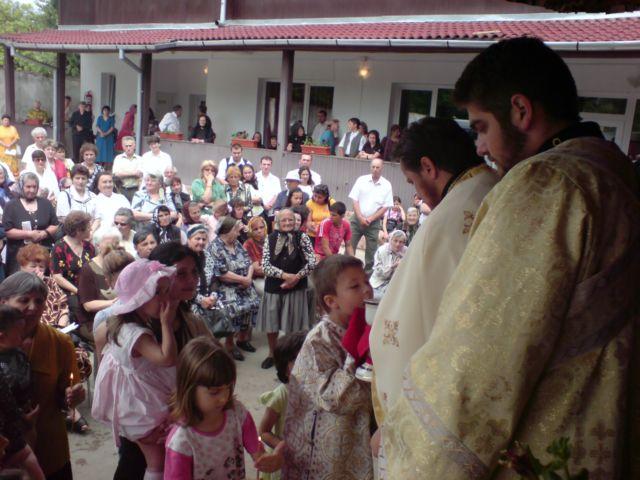 Cu binecuvântarea Preasfinţitului Părinte Episcop Lucian, în curtea Seminarului s-a oficiat Sfânta Liturghie de către un sobor de preoţi, care au răspuns astfel invitaţiei P.C. Părinte paroh Liviu Muntean de a fi alături de credincioşii ce frecventează acest sfânt locaş, cunoscut în oraş şi în zonă sub numele de „biserica de lemn”. Au slujit împreună la acest eveniment P.Cuv. Arhimandrit Constantin Timiş, exarhul mănăstirilor din Episcopia Caransebeşului, P.On. Pr. Alin Câmpean, consilier administrativ-bisericesc, P.On. Pr. Liviu Mihai Drăgan, protopopul Caransebeşului, P.C. Pr. Rusalin Simeria, „decanul” de vârstă al preoţilor din eparhie, P.C. Pr. Teodor Dănuţ Coste, slujitor la Catedrala istorică „Sf.M.Mc. Gheorghe”, P.C. Pr. Gabriel Tat de la Parohia „Schimbarea la faţă” Caransebeş, P.C. Diac. Nicolae Ovidiu