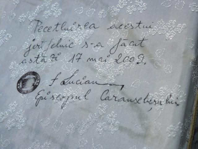 În prima parte a vizitei pastorale, Preasfinţia Sa a resfinţit masa sfântului altar, recent renovată, întrucât ajunsese într-o stare avansată de degradare. Mai apoi Chiriarhul a săvârşit sluba de resfinţire a interiorului bisericii, respectiv a picturii restaurate, după care a săvârşit Sf. Liturghie arhierească.