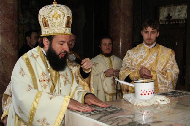 Întrucât, datorită infiltrării umezelii, sfânta masă a fost deteriorată, în cadrul slujbei de resfinţire, sfântul jertfelnic refăcut a fost pecetluit, după care toţi credincioşii, bărbaţi şi femei au putut să se închine înaintea prestolului pecetluit în ziua sfinţirii.