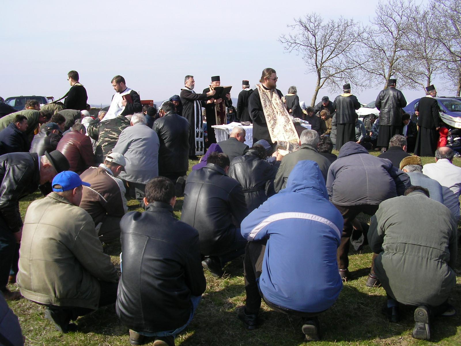 Duminică 22 martie 2009 pe platoul din vârful muntelui numit Piatra Petranilor peste 300 de credincioşi ortodocşi din zonă s-au adunat împreună cu 12 preoţi din satele învecinate pentru a oficia o slujbă de sfinţire a locului unde va fi ridicată o cruce înaltă de 33 de metri. Alături de preoţii din satele învecinate au fost şi preoţi din Bucureşti susţinători ai acestei iniţiative.