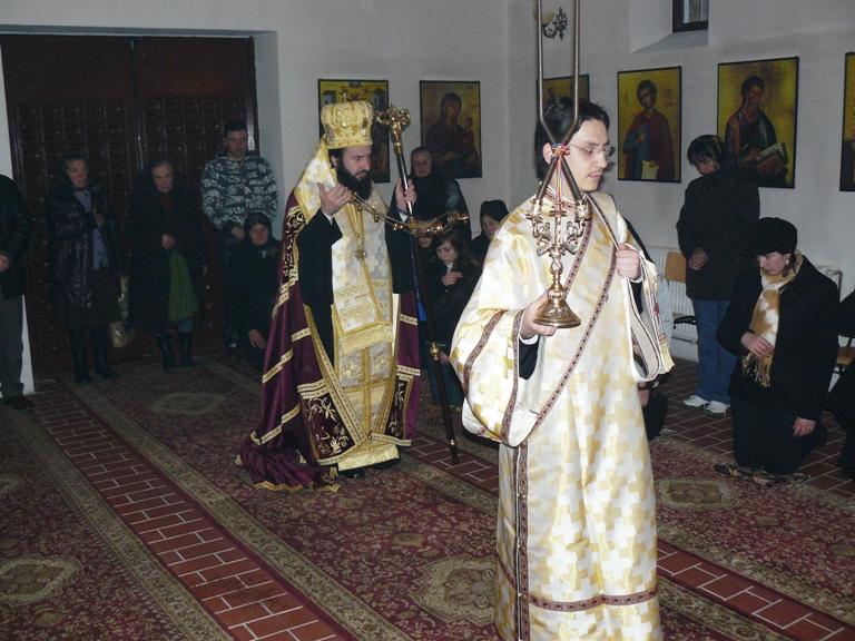 Această slujbă s-a săvârşit de către Preasfinţitul Părinte Episcop Lucian la mănăstirea Piatra Scrisă din Episcopia Caransebeşului, în prezenţa credincioşilor care frecventează această mănăstire din ce în ce mai mult, descoperind frumuseaţea slujbelor duhovniceşti din perioada Postului Mare, slube săvârşite de monahii care se ostenesc aici.
