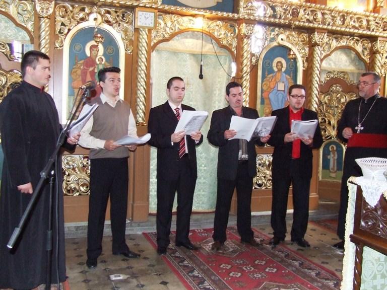 În dimineaţa zilei de prăznuire a „Izvorului Tămăduirii”, am săvârşit slujba de „Sfinţire a apei” după tipicul special al Săptămânii Luminate, împreună cu Prea Onoratul părinte Petru Drăghicescu, protopopul de Toracu Mare – Serbia, cu Prea Cuviosul arhimandrit Longhin Muncean, eclesiarhul Catedralei episcopale din Vârşeţ, cu pr.Ioan Jurj din Făget, pr. Ioan Carebia din Buziaş, pr. Ioan Mermeze şi pr. Ionel Cristea din Ghiroda, precum şi cu diaconul Emil Varga de la parohia noastră din Reşiţa. Cântările de strană au fost susţinute, cum era şi firesc de „Strana Strămoşească”.
