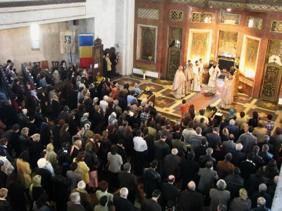 Biserica, de dimensiuni impresionante, a cuprins numărul mare de credincioşi veniţi să dea slavă Lui Dumnezeu şi să-I ceară ajutor şi mântuire în cadrul arhiereştii Liturghii. S-au împărtăşit mai mulţi credincioşi, mare parte dintre aceştia fiind copii.