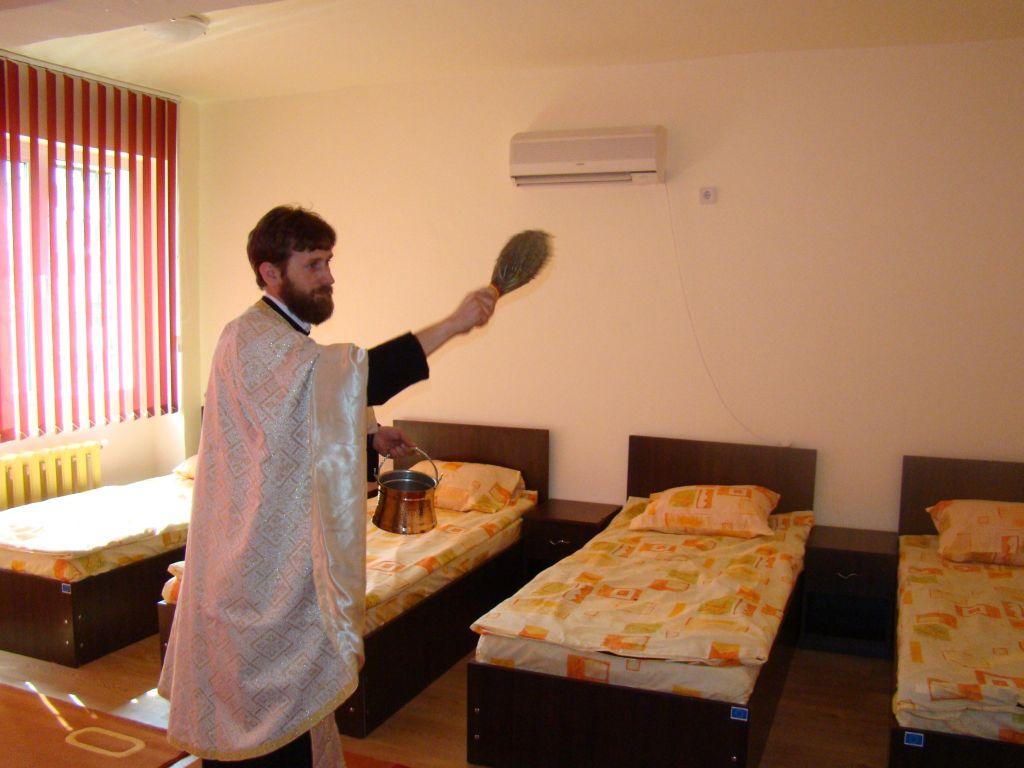 PC Pr. Ionel Daniel Rădoi, Consilier Social în cadrul Episcopiei Slatinei şi Romanaţilor, alături de Diac. Marius Nicolae Păun, Inspector Social în cadrul aceleiaşi instituţii, au săvârşit slujba de sfinţire a Centrului, oferind la sfârşit din partea Preasfinţitului Părinte Sebastian, reprezentanţilor Centrului, o icoană a Maicii Domnului cu Pruncul Iisus. Părintele Rădoi a salutat iniţiativa deschiderii acestui Centru, exprimându-şi speranţa că acesta va fi util comunităţii: „Îi mulţumim Domnului că s-a deschis acest Centru şi sper să vedem numai zâmbete pe feţele copiilor de aici”.