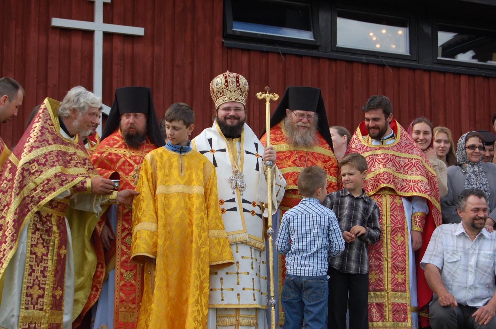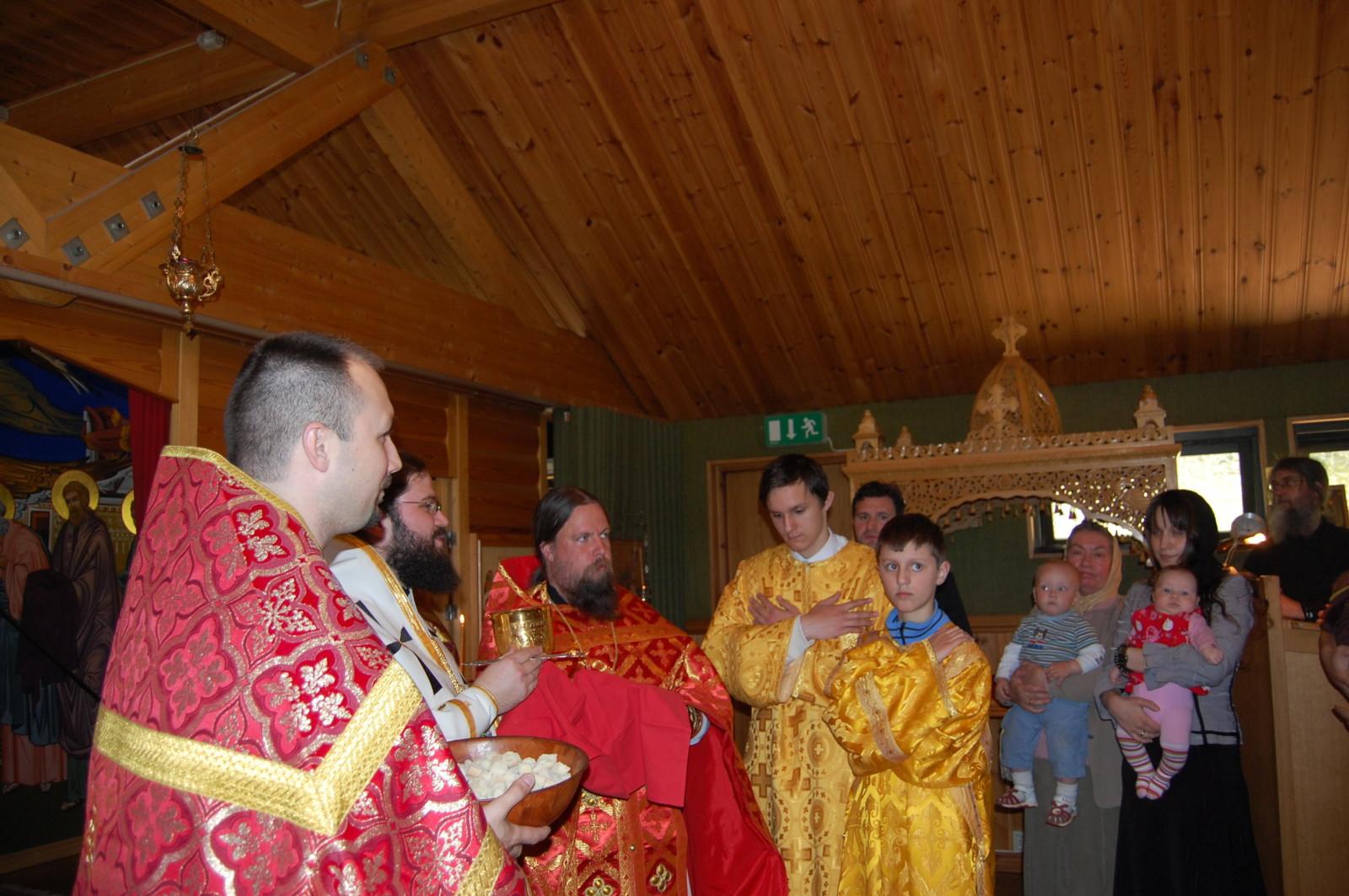 Joi, 21 mai 2009, de Sărbătoarea Sfinţilor Împăraţi Constantin şi Elena, la invitaţia Preacuviosului Părinte Stareţ Dorotei Forsner şi cu acordul Preasfinţitului Dositei Motika, Episcopul sârbilor din Marea Britanie şi Scandinavia, Preasfinţitul Macarie Drăgoi, Episcopul românilor din Europa de Nord, a slujit Dumnezeiasca Liturghie în Mănăstirea ortodoxă suedeză „Sfânta Treime” din localitatea Bredared.