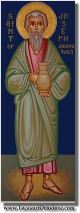 Despre Sfântul pomenit astăzi există atât mărturii biblice, cât şi din tradiţia ortodoxă. „(…) Iosif din Arimateea, fiind ucenic al lui Iisus, dar într-ascuns, de frica iudeilor, a rugat pe Pilat ca să ridice trupul lui Iisus. Şi Pilat i-a dat voie. Deci a venit şi a ridicat trupul Lui.” (Ioan 19, 38)