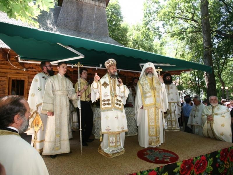 Slujba a fost ţinută în parcul din incinta frumoasei biserici din lemn a mănăstirii, la acest eveniment participând un număr mare de credincioşi şi reprezentaţi ai autorităţilor locale.