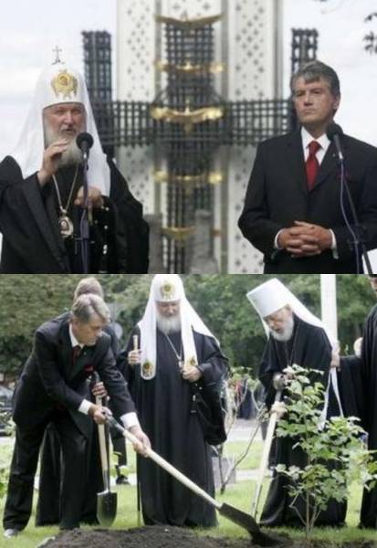 Cei doi lideri au făcut declaraţii, după ce au depus flori la monumentul destinat victimelor teribilei infometari din perioada 1932-1933, care a ucis milioane de oameni nevinovaţi – foamete, sustin multi, pusă la cale de autorităţile sovietice pentru cedarea către stat a terenurilor aflate în proprietate privată.
