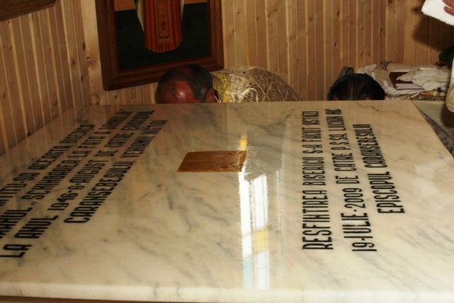 Astfel că după înnoirea sfintei mese s-au reaşezat sfintele moaşte în sfântul prestol, precum şi hrisovul cel vechi (din anul 1946), adăugându-se deopotrivă şi o nouă însemnare. După slujba de resfinţire s-a oficiat dumnezeiasca Liturghie arhierească, în finalul căreia credincioşii s-au închinat înaintea sfintei mese. La Sf. Liturghie din ziua hramului au luat parte la Sf. Liturghie 400 de credincioşi, iar din partea Centrului Eparhial a participat P.Cuv. Părinte Arhim. Constantin Timiş, exarhul mănăstirilor din Episcopia Caransebeşului.