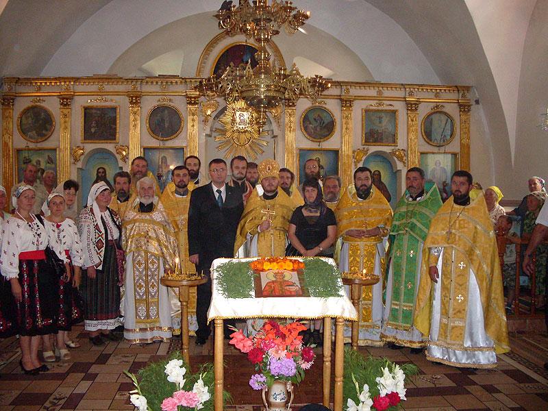 La început a fost oficiată slujba Sf. Liturghii, săvîrşită de preoţii din protopopiat, după care a urmat Acatistul în cinstea sfantului.