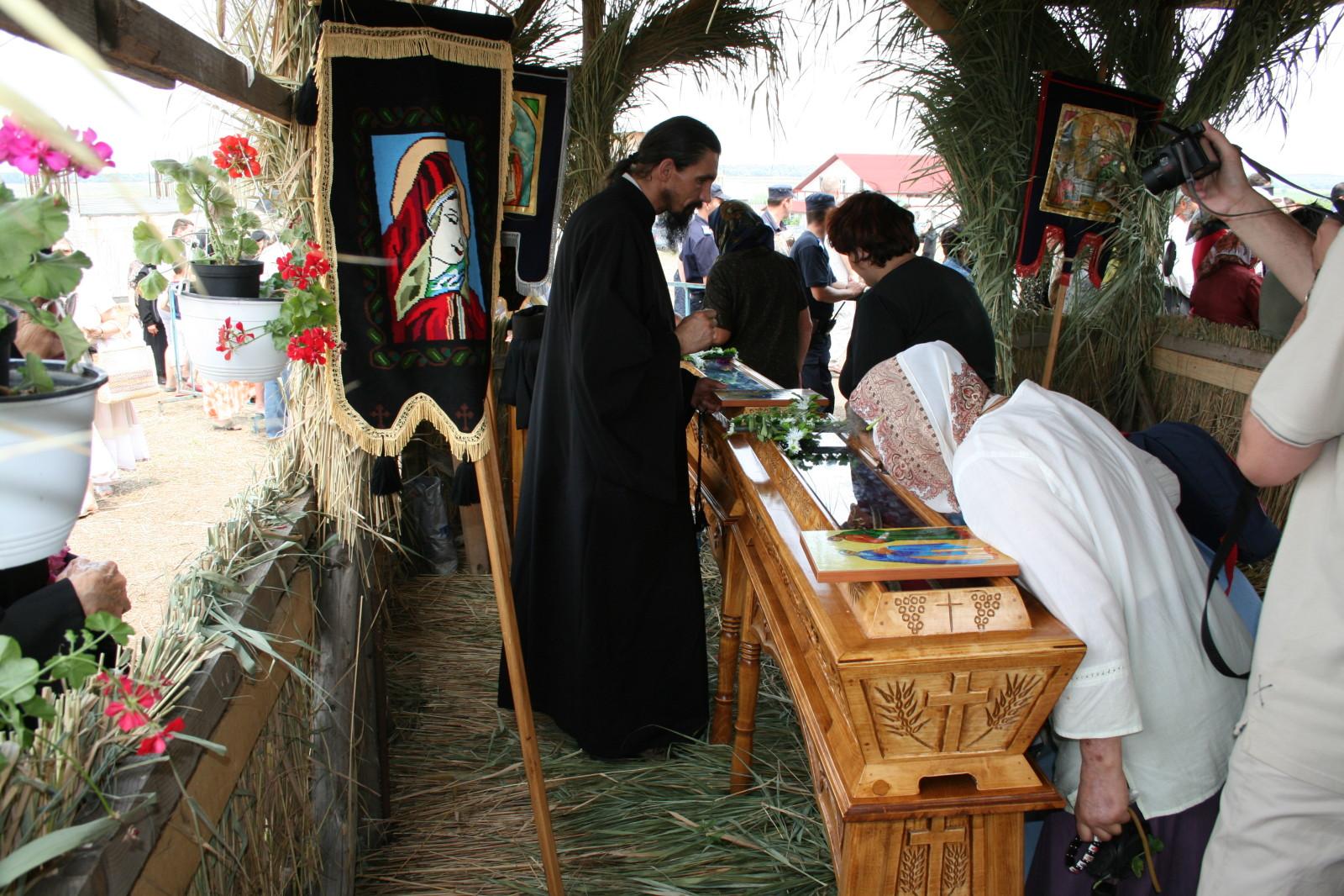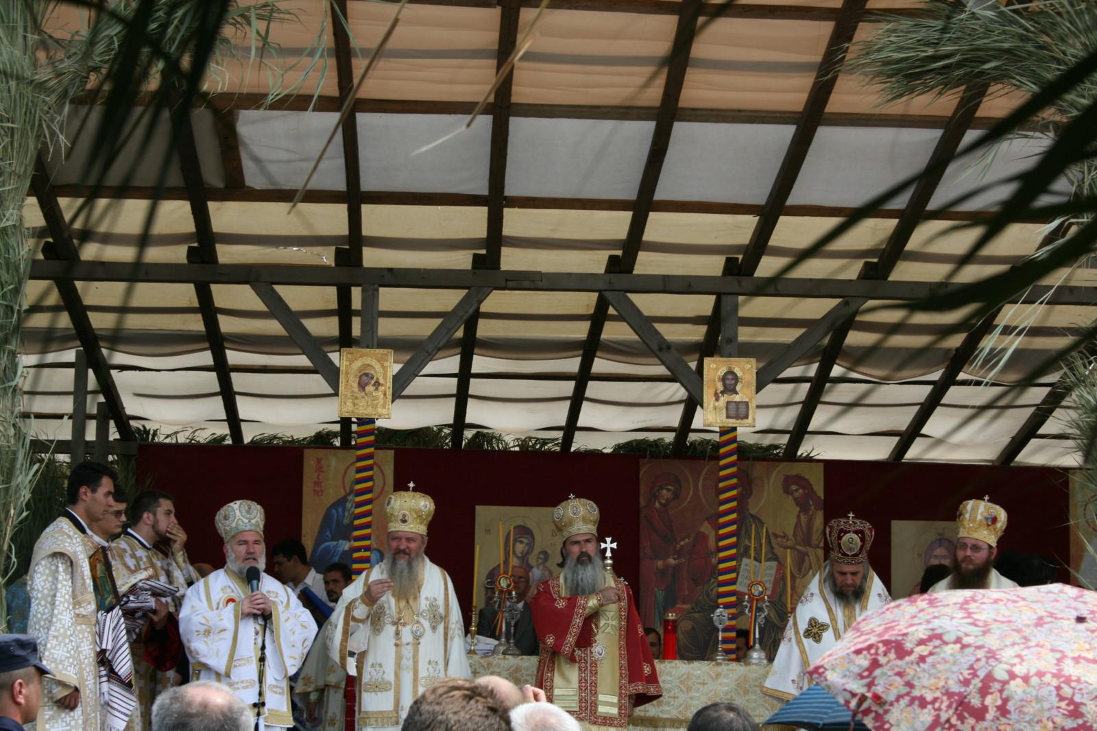 Lumina soarelui ne-a arătat, în sfârşit, proporţiile sărbătorii: 7 autocare cu pelerini, autoturisme… o scenă şi un baldachin pline de flori, copii, tineri, bătrâni braţ-la-braţ, călugări şi călugăriţe, TVR-ul pregătit de reportaj,