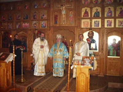 Primirea Prea Sfintitului Episcop a avut loc in jurul orei 9:45, Sfanta Liturghie incepand la orele 10:00. In cuvantul de invatatura, PS Visarion a vorbit despre femeia garbova si despre importanta tezaurului din