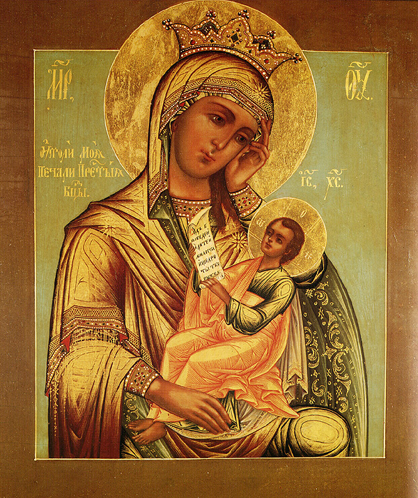 Există o Icoană străveche și profund venerată a Maicii Domnului „Alină-mi Durerile”, în Sankt Petersburg, în Biserica "Înălțarea Domnului", pe strada Vojnesenschi, lângă Canalul Ecaterinenschi.