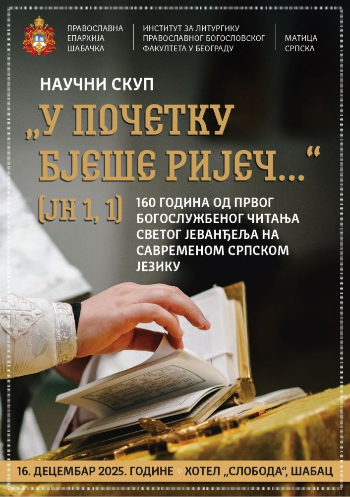 Eparhia sârbă de Sabac, cu ocazia marelui jubileu - 160 de ani de la prima citire liturgică a Sfintei Evanghelii în limba sârbă modernă, organizează o conferință științifică „La început era Cuvântul...” (Ioan 1:1), mâine, 16 decembrie 2025, la hotelul „Sloboda” din Sabac.