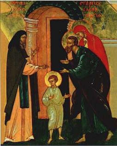 Oamenii au fost uimiți când copilul aflat încă în pântecele Mariei a țipat de trei ori în biserică, în timpul Sfintei Liturghii: prima oară înainte de citirea Sfintei Evanghelii, a doua oară în timpul Imnului Heruvimic și, a treia oară, atunci când preotul spunea: „Sfintele Sfinților!".