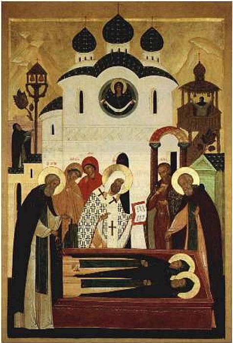 Încă din secolul al XIV-lea, părinții Sfântului Serghie erau înfățișați în icoane având aure. Întrucât Sfântul Serghie se ruga pentru odihna părinților săi la mormântul lor de fiecare dată înainte de a intra în mânăstire, pelerinii, în drum către Lavra Preasfintei Treimi, își făcuseră și ei același obicei de a vizita mai întâi Mânăstirea Hotkov, pentru a se ruga, de asemenea, înaintea părinților Sfântului Sergie de Radonej.